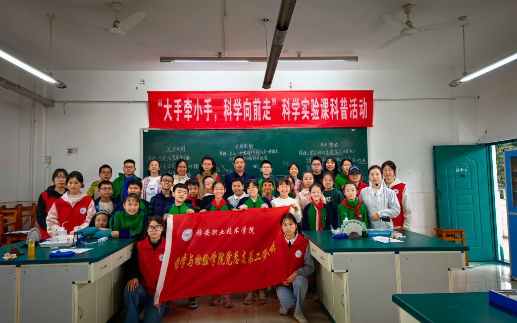 2025年10月21、23、28日,雅安职业技术学院药学与检验学院联合智能制造与信息工程学院,对雅安市雨城区汉碑慈济小学五年级265名学生与雅安市雨城区光华学校五年级220名学生开展了“大手牵小手,科学向前走”科学实验课科普活动。本次活动紧跟小学五年级科学课教学进度及时开展“光的传播”实验、“火山喷发”实验。