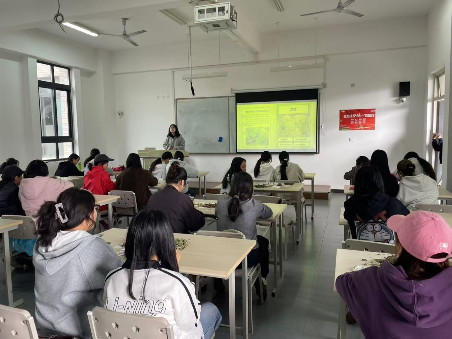 活动伊始,一场“认识中草药”的趣味讲解迅速点燃现场氛围。通过清晰的图片和生动的PPT,薄荷、草决明、白芷等8味常见中药不再只是书本上的名字,而是有形态、有习性、有故事的“自然伙伴”。同学们在聆听中快速建立起对中医药的初步认知,也明确了本次活动的创意核心——用艺术拼贴传递本草情怀。