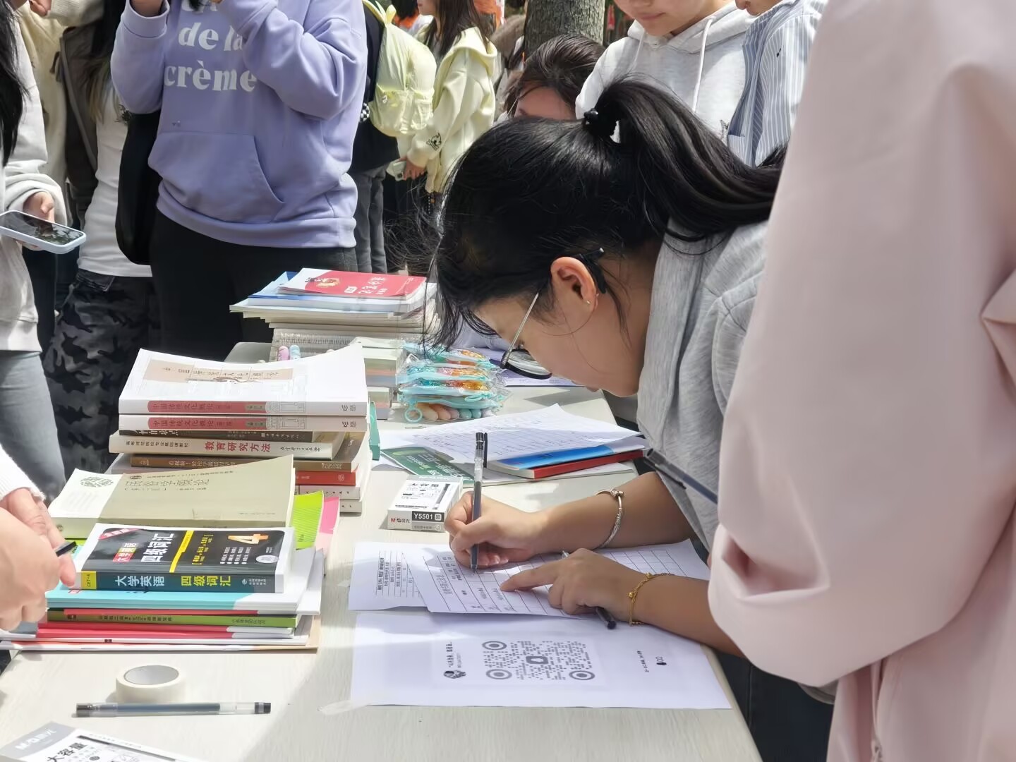活动前期,学院工作人员提前布置现场,准备好桌椅、签到表及各类纪念品,确保活动有序开展。活动期间,师生们在工作人员引导下依次完成登记与书籍捐赠,现场气氛热烈。捐赠者根据捐赠数量领取了黑色签字笔、荧光笔、彩色便签、十色笔及笔记本等纪念品。许多同学表示,让闲置书籍找到新读者,自己也感受到了分享的快乐。本次活动不仅实现了校园图书的循环利用,也营造了互助分享、热心公益的良好氛围。
