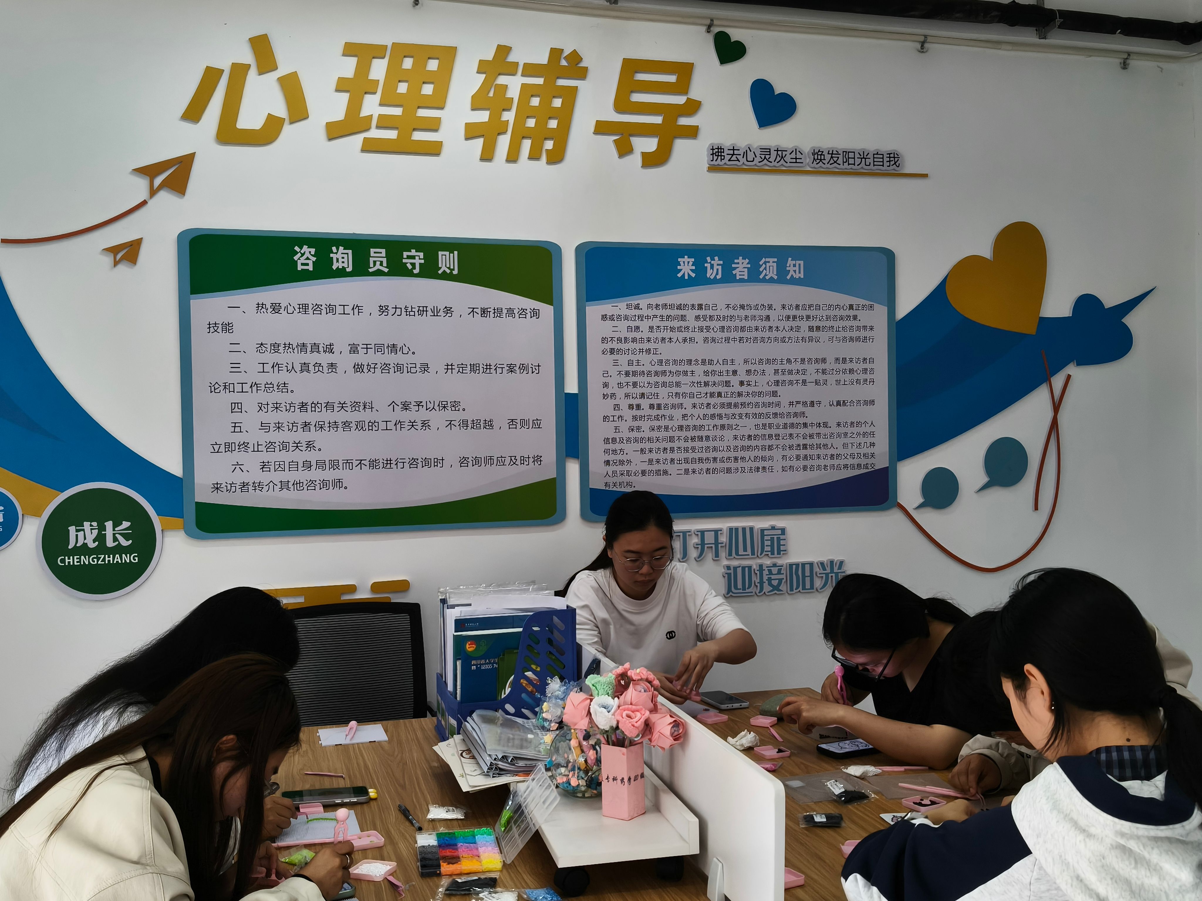 为积极响应“5·25”全国大学生心理健康日号召,深入贯彻落实学校《关于进一步加强和改进大学生心理健康教育工作的实施方案》,根据学校第十九届“5·25”心理健康教育月系列活动安排,药学与检验学院4月14日,药学与检验学院在一站式学生社区“暖阳”心理辅导站开展“一豆一世界,拼出好心情”主题拼豆工作坊活动。本次活动旨在通过沉浸式手工体验,帮助学生缓解学业与生活压力,提升专注力与情绪调节能力,以更具吸引力的方式推进心理健康教育走深走实。