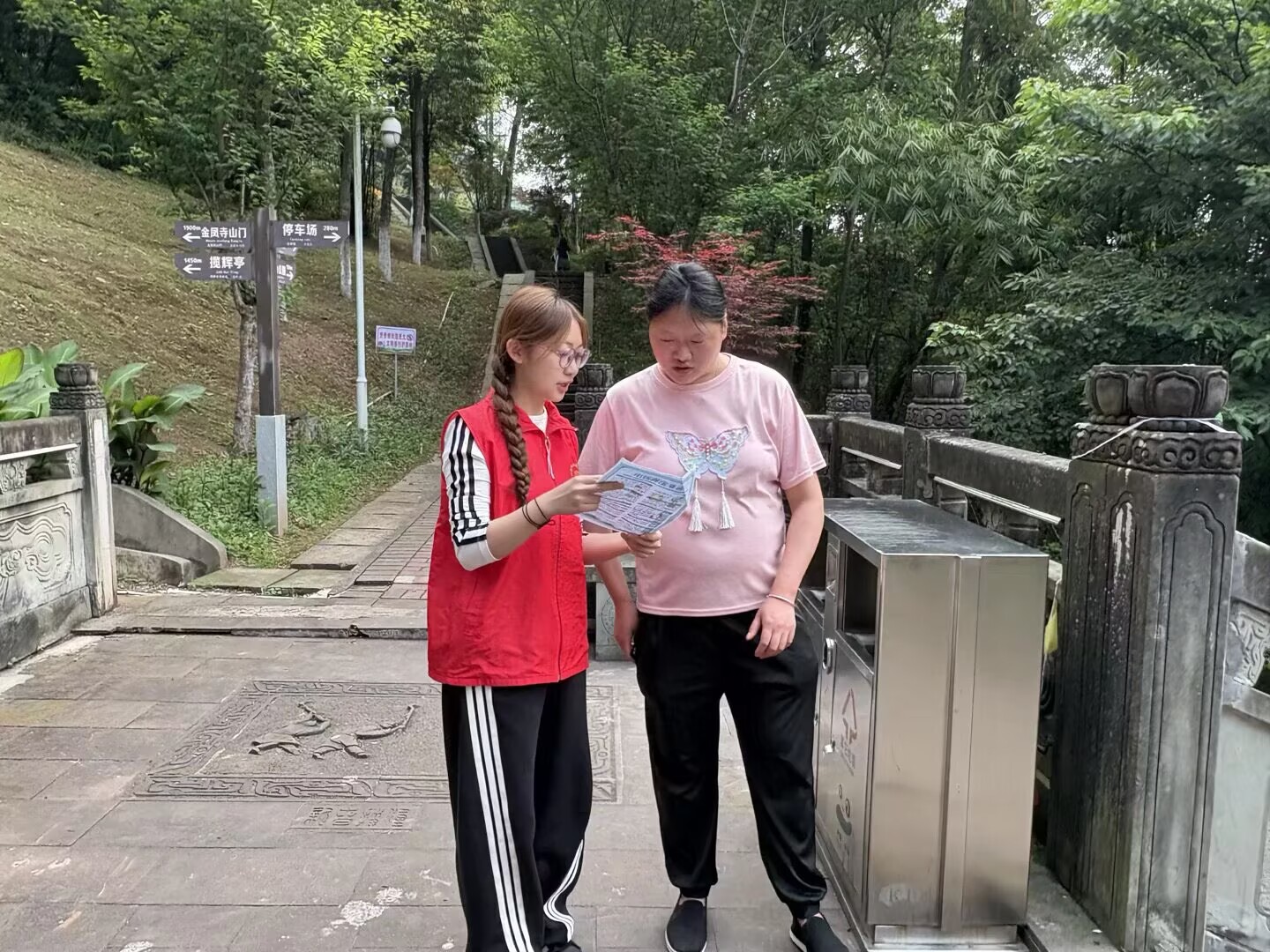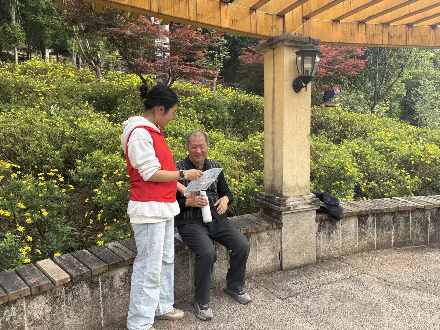 活动当天,志愿者们以小组为单位,深入天梯步道、休闲亭等人流集中区域,围绕四季中医养生、药食同源食材辨识、常见中药材功效、日常穴位保健等核心内容,用通俗易懂的语言向群众进行科普讲解。