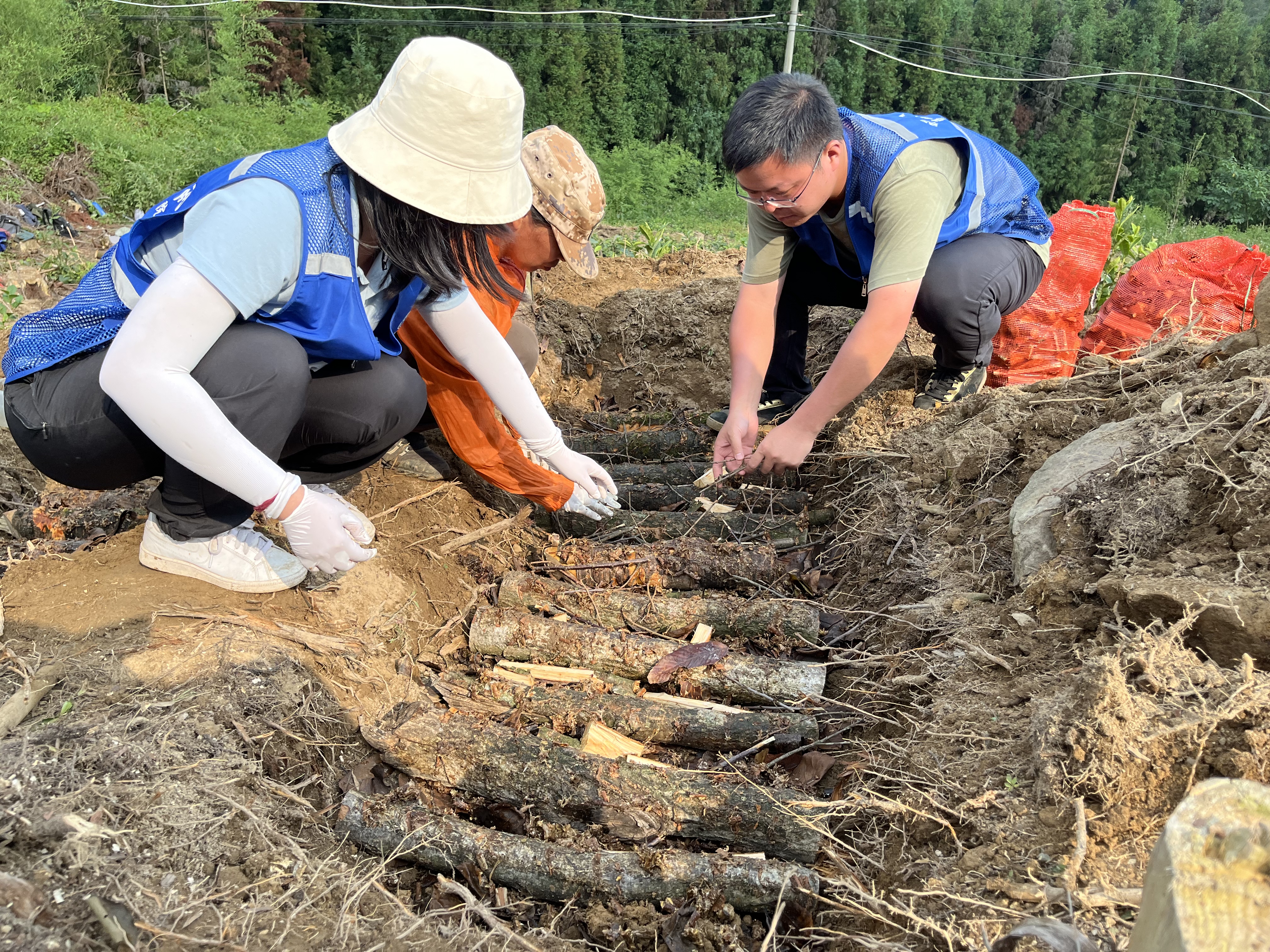 在工作室负责人刘德军老师的带领下,团队师生顶着烈日,不畏酷暑,从如何挖掘种植塘、如何选择菌材、如何摆放菌材、如何放菌种、如何覆土等天麻仿野生种植的各个环节对公司员工进行现场示范和悉心指导,各位老师各司其职,在各自负责的环节进行详细讲解,务求公司员工掌握相关环节技术要领,本次共计培训量达50人次。同时,中药学专业的同学现场感受和学习了雅安道地药材--天麻仿野生种植技术要领,对道地药材的生产有了更进一步的认识。