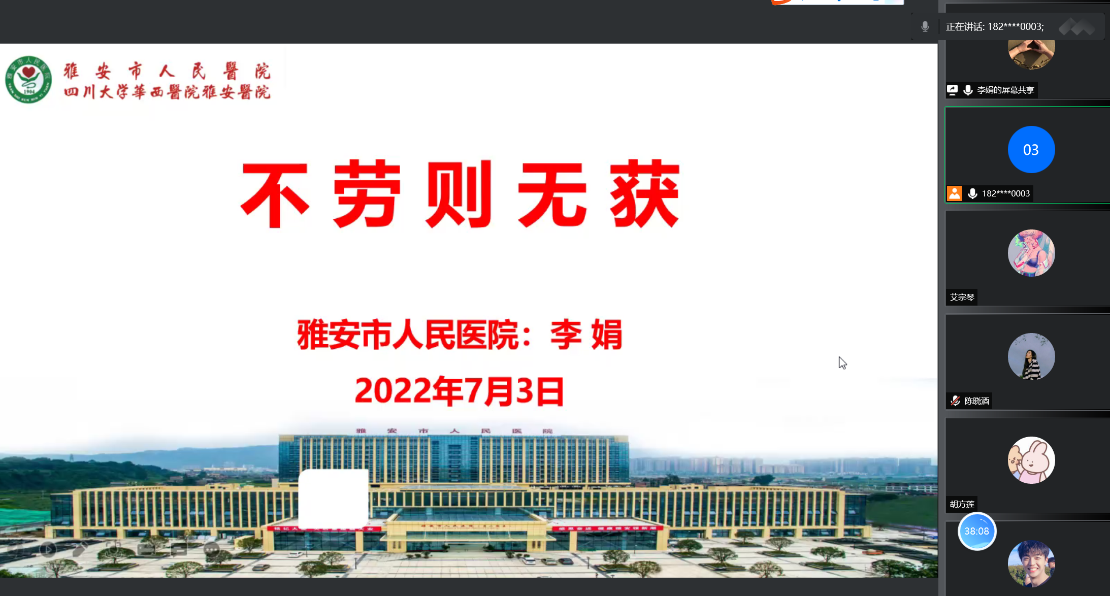7月3日,药学与检验学院邀请到雅安市人民医院护理部副主任、全国抗击新冠肺炎疫情先进个人、第23届“四川青年五四奖章”获得者李娟为我院2021级同学开展“不劳则无获”的劳动教育专题讲座。