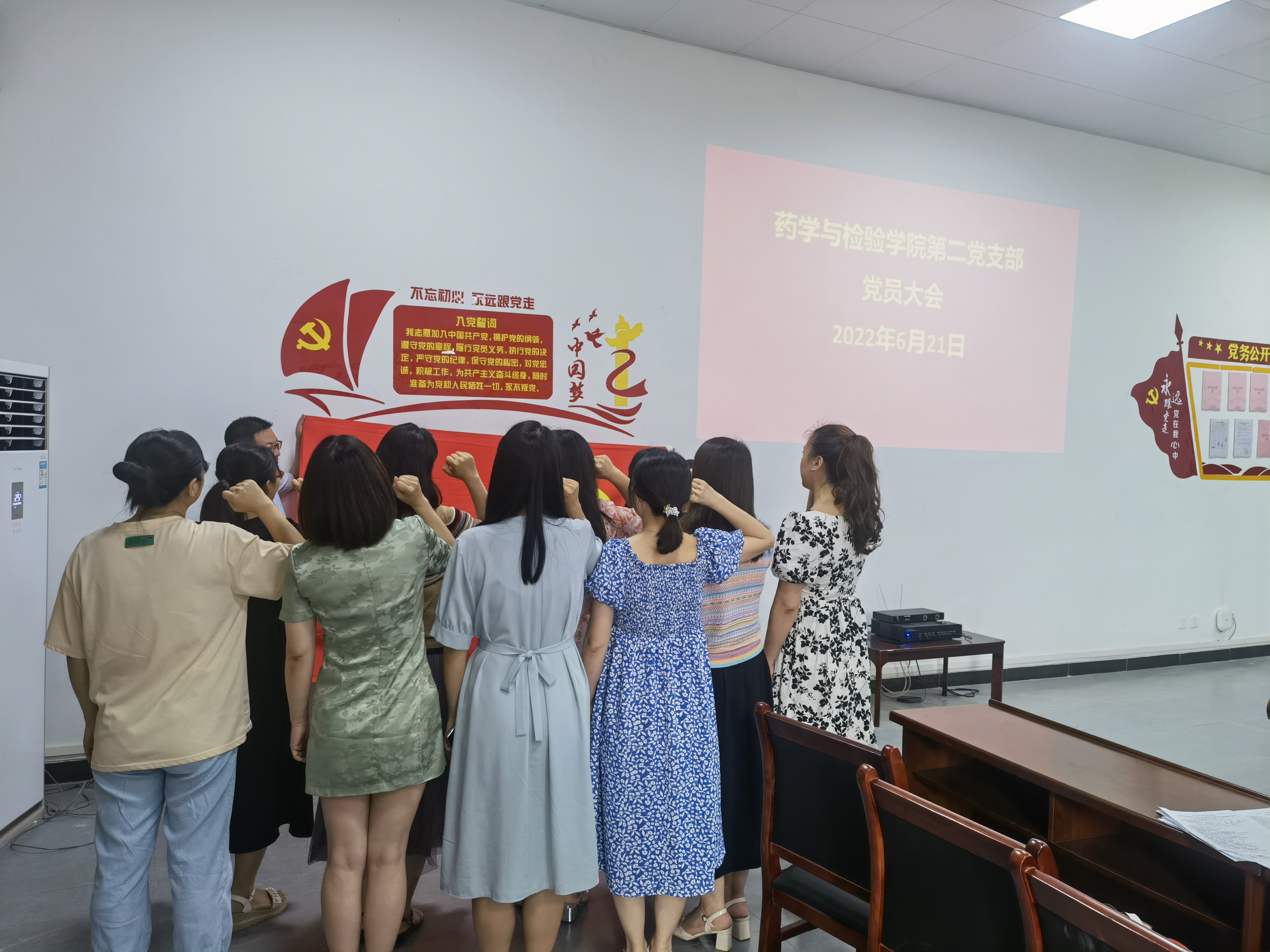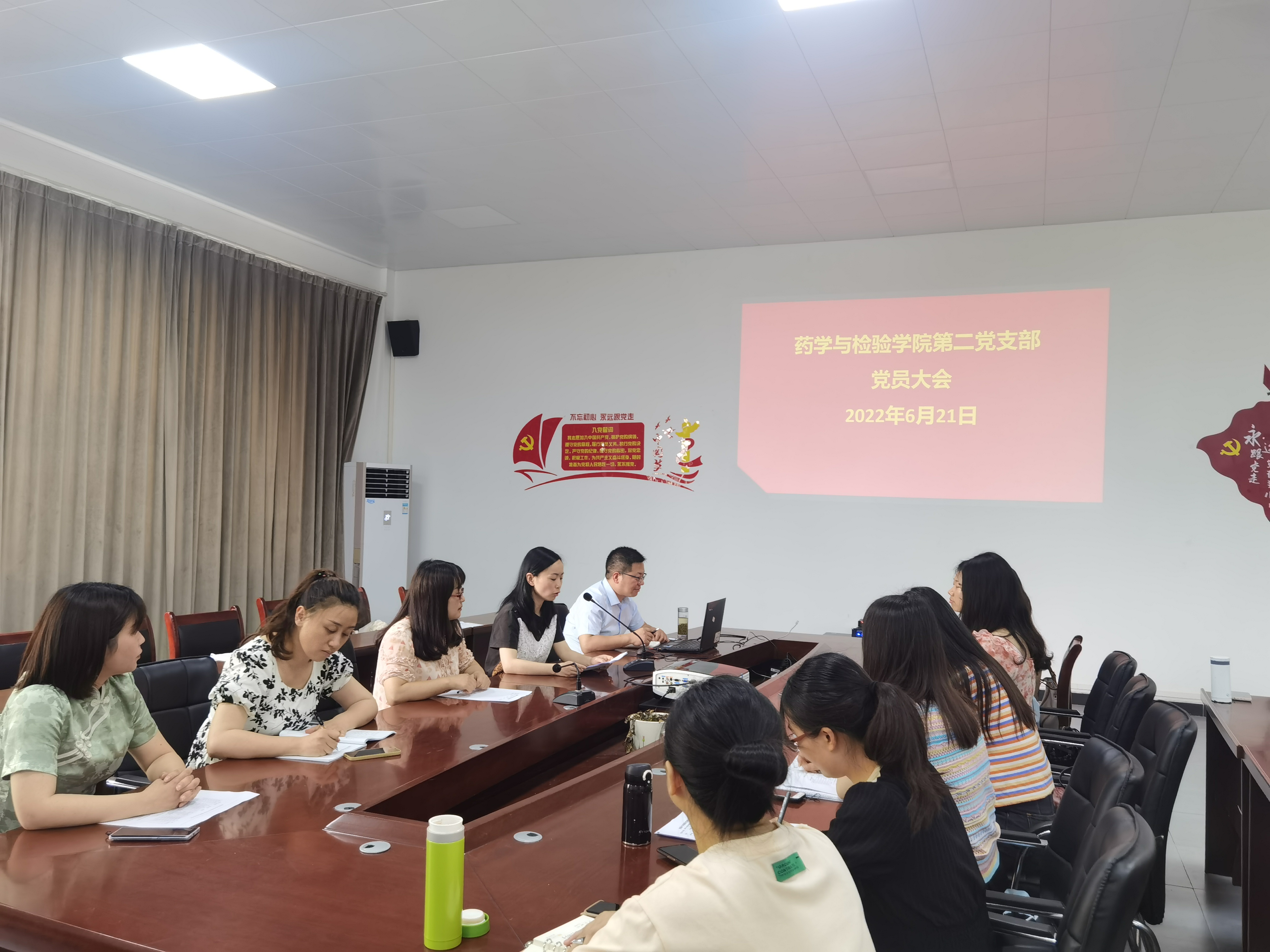 2022年6月21日,药学与检验学院第二党支部在药学与检验学院会议室召开了关于吸收杨冬雪同志为预备党员的支部大会。大会由药学与检验学院第二党支部书记何靖柳同志主持,参加此次会议的有药学与检验学院副书记罗小莉、药学与检验学院院长李成忠,以及支部9名正式党员和1名发展对象。
