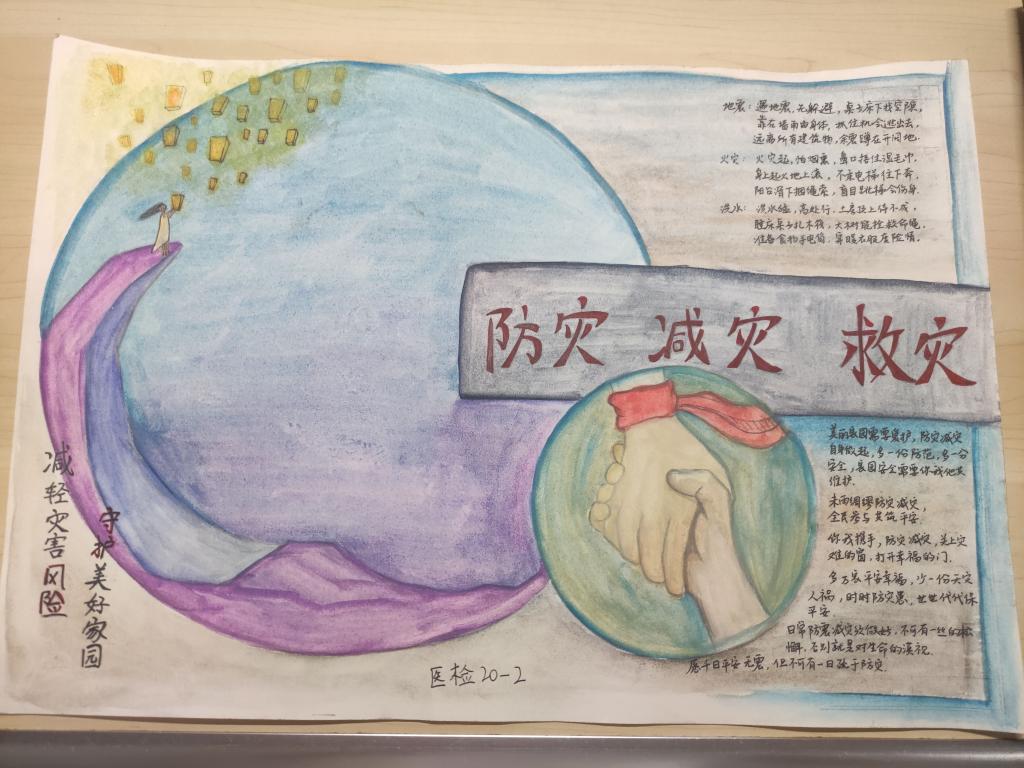 为了让同学们进一步了解防灾减灾知识,同时也为了增强同学们的防灾避险意识,5月24日药学与检验学院开展了以为“减轻灾害风险,守护美好家园”为主题的防灾减灾救灾手抄报活动。同学们积极参与投稿,最终选出四十份作品于经开区2102进行评比,本次活动评委为9名学生会成员,秉承着公平公正公开的原则展开评审讨论。
