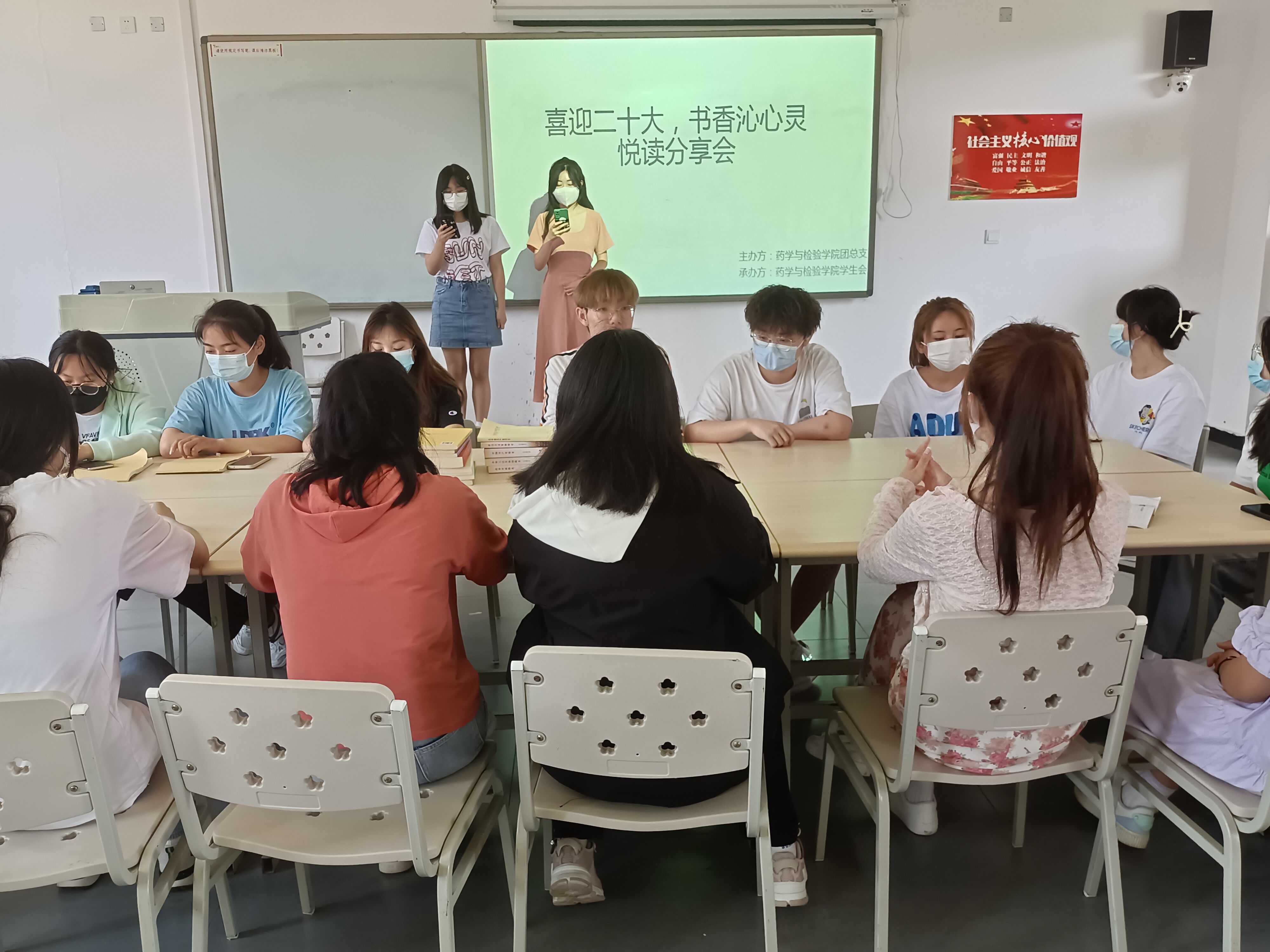 以书会友,党建治学,历史是最好的教科书和清醒剂。为了迎接党的二十大,将二十大精神与读书会结合起来,让大家从优秀文学作品中汲取前进的智慧,提高大家的文学素养。4月28日,药学与检验学院团总支以“圆桌会议”的形式开展了主题“喜迎二十大,书香沁心灵”读书分享会。参加活动人数共计20余人。