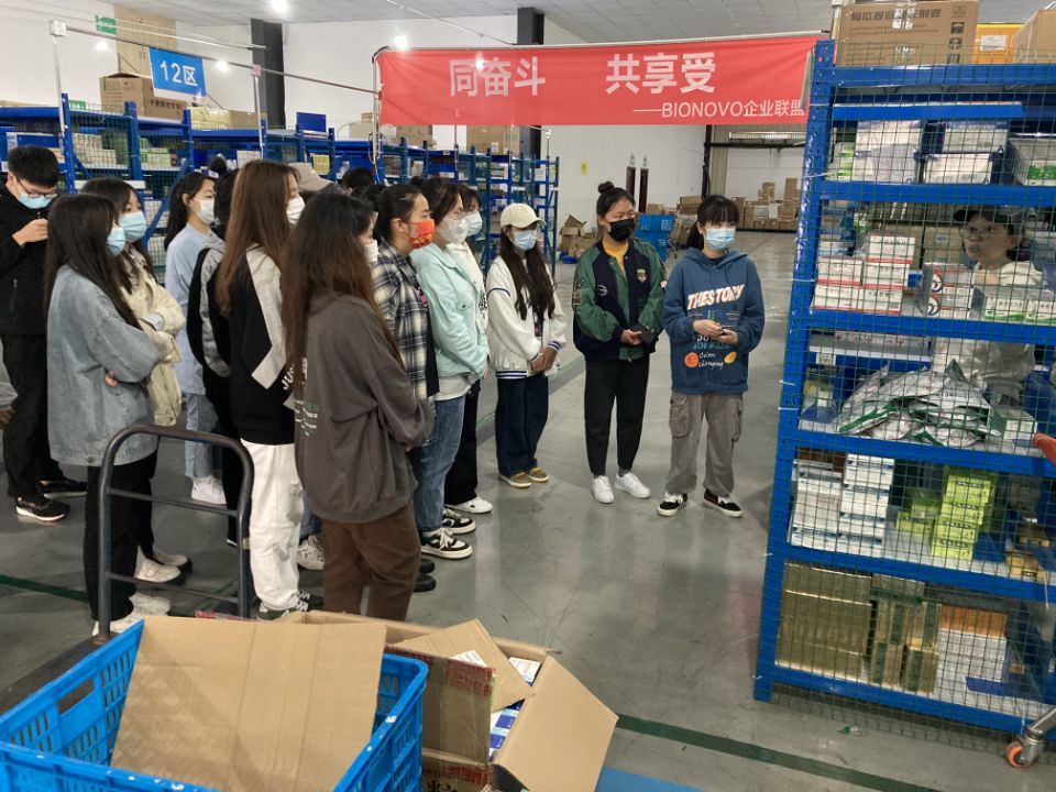 活动中,奥泽药业企业负责人魏娇首先给同学们展示了企业的资质,详细介绍了该企业电商医药的经营模式、操作流程。随后到仓库现场参观学习了药品的采购、验收、上架、储存、出库等各流通环节的相关知识。
