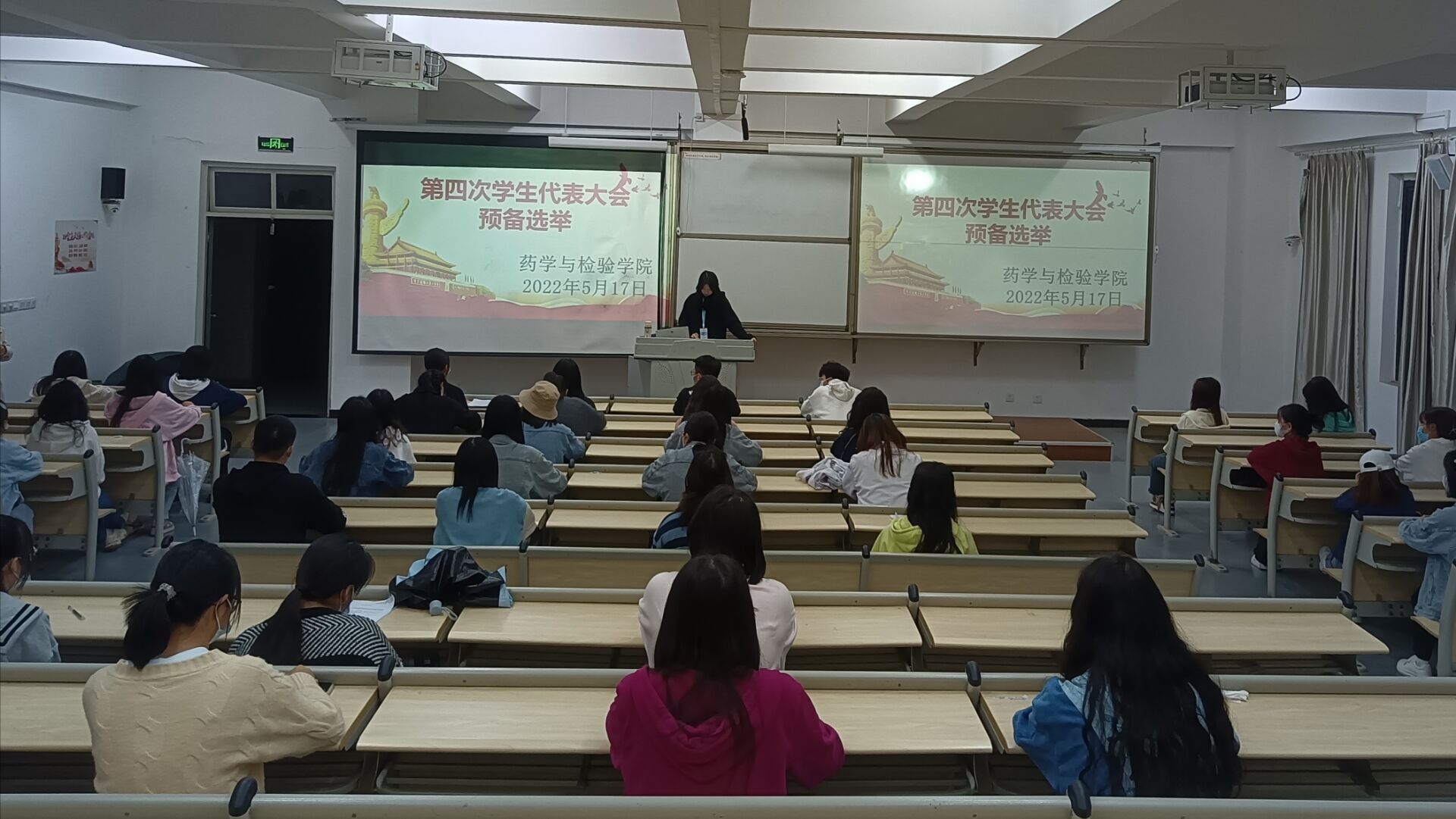 为迎接第四次学生代表大会的到来,维护学生代表民主权利,2022年5月17日,药学与检验学院团总支学生会于经开区2104教室组织开展第四次学生代表大会预备选举会议。参与此次预选会的有各班班委、优秀学生代表,共计50人。
