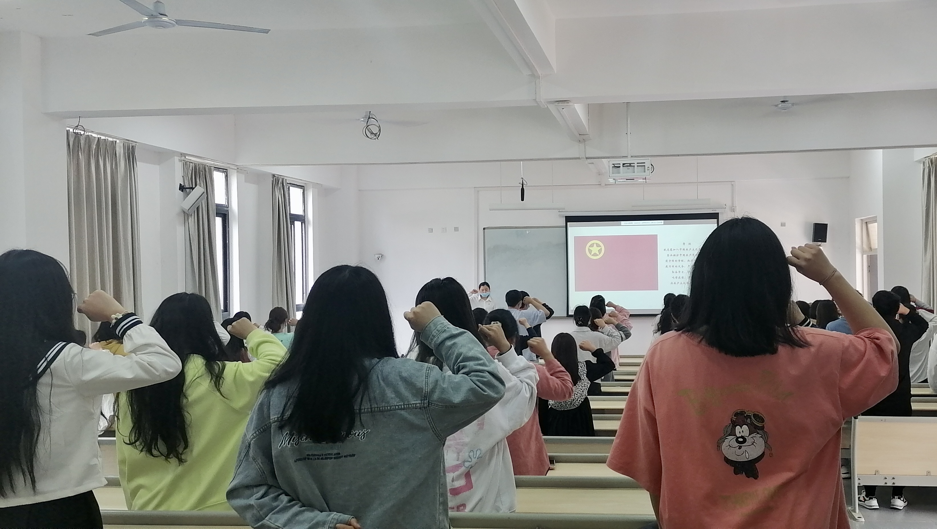 为了增强团员意识,树立良好的团员形象,3月14日,药检学院团总支在2106教室开展了以“永远跟党走,奋进新征程”为主题的开学第一堂团课,本次团课采用线上线下同屏直播形式开展。线下由各班团支部书记参加,约五十余人,线上则由各团支部委员会成员参与,约150人左右。