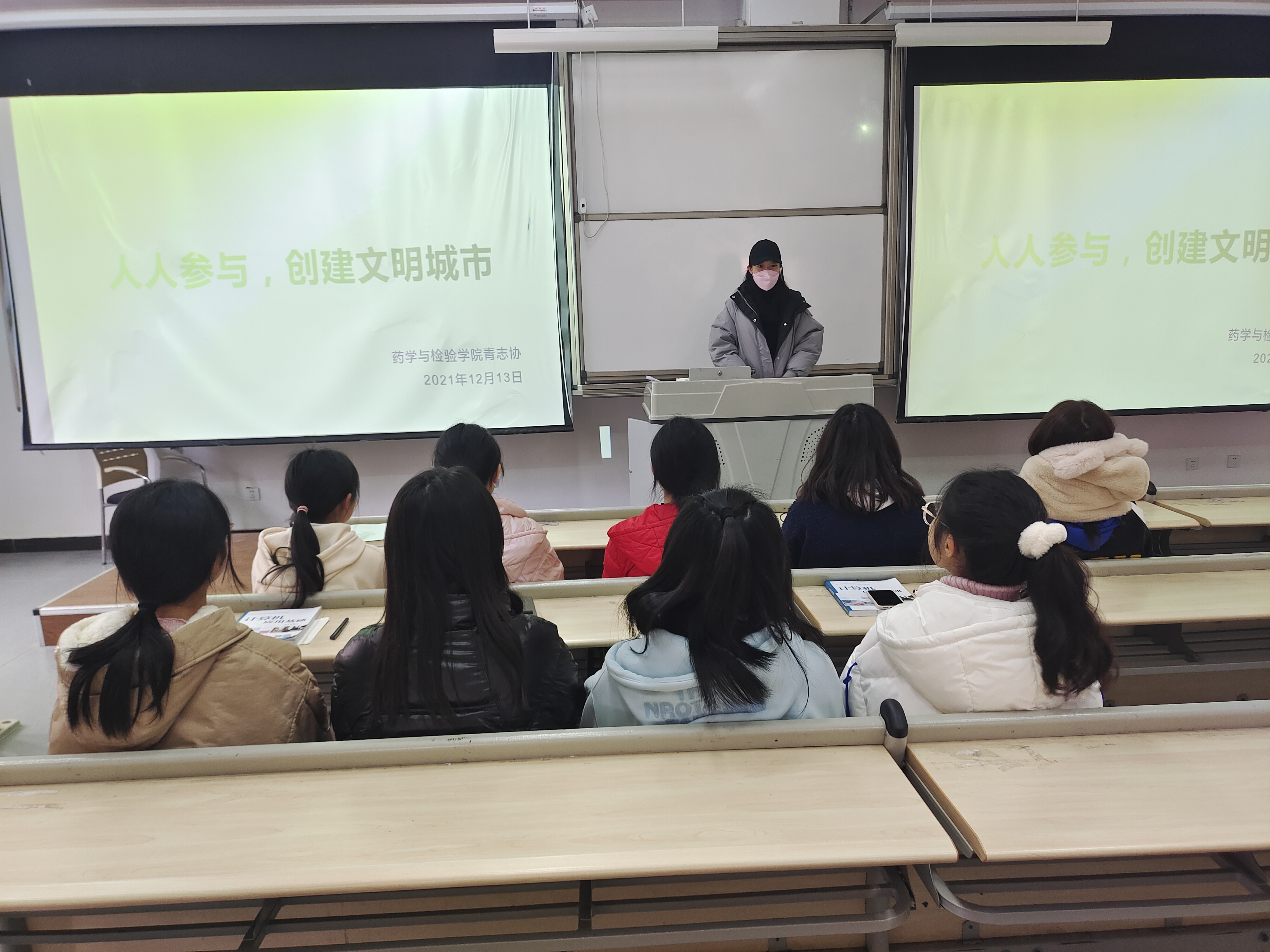 培训会上,药学与检验学院青志协会长吴靖杰向志愿者们宣读了由共青团雅安市委联合市委组织部等15个部门印发《推动雅安市青年志愿服务制度化常态化的十条激励措施》。同时也指出,作为志愿者,在创建全国文明城市工作中,要有志愿服务的责任感和紧迫感,要提振自身的形象和素质,且有吃苦精神,将自身树立为标杆,带动更多同学参与到创建全国文明城市的行动中来。