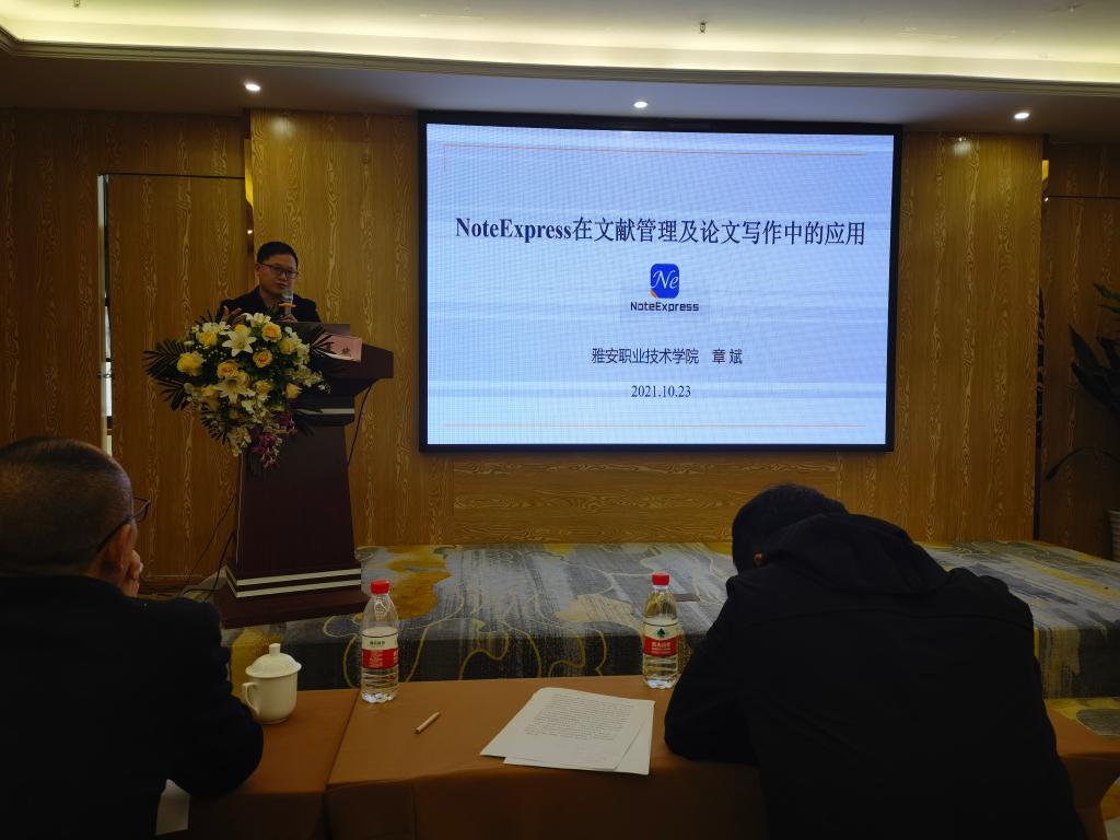 2021年10月23日,药学与检验学院何靖柳副院长、章斌老师受四川省继续教育项目及雅安市放射专委会学术年会会务组的邀请,在大会上分别作了题为《文献检索方法》和《NoteExpress在文献管理及论文写作中的应用》的学术报告。