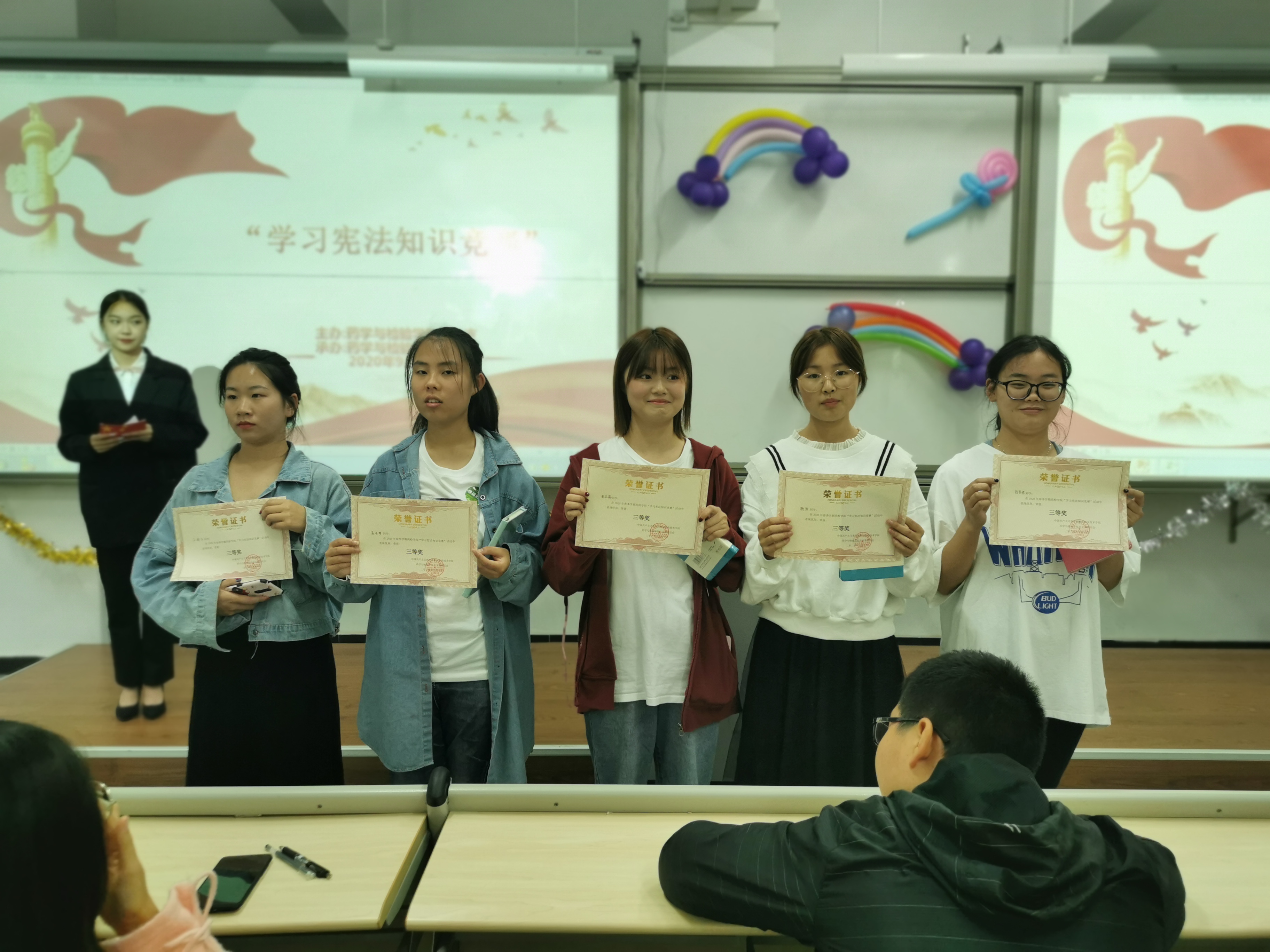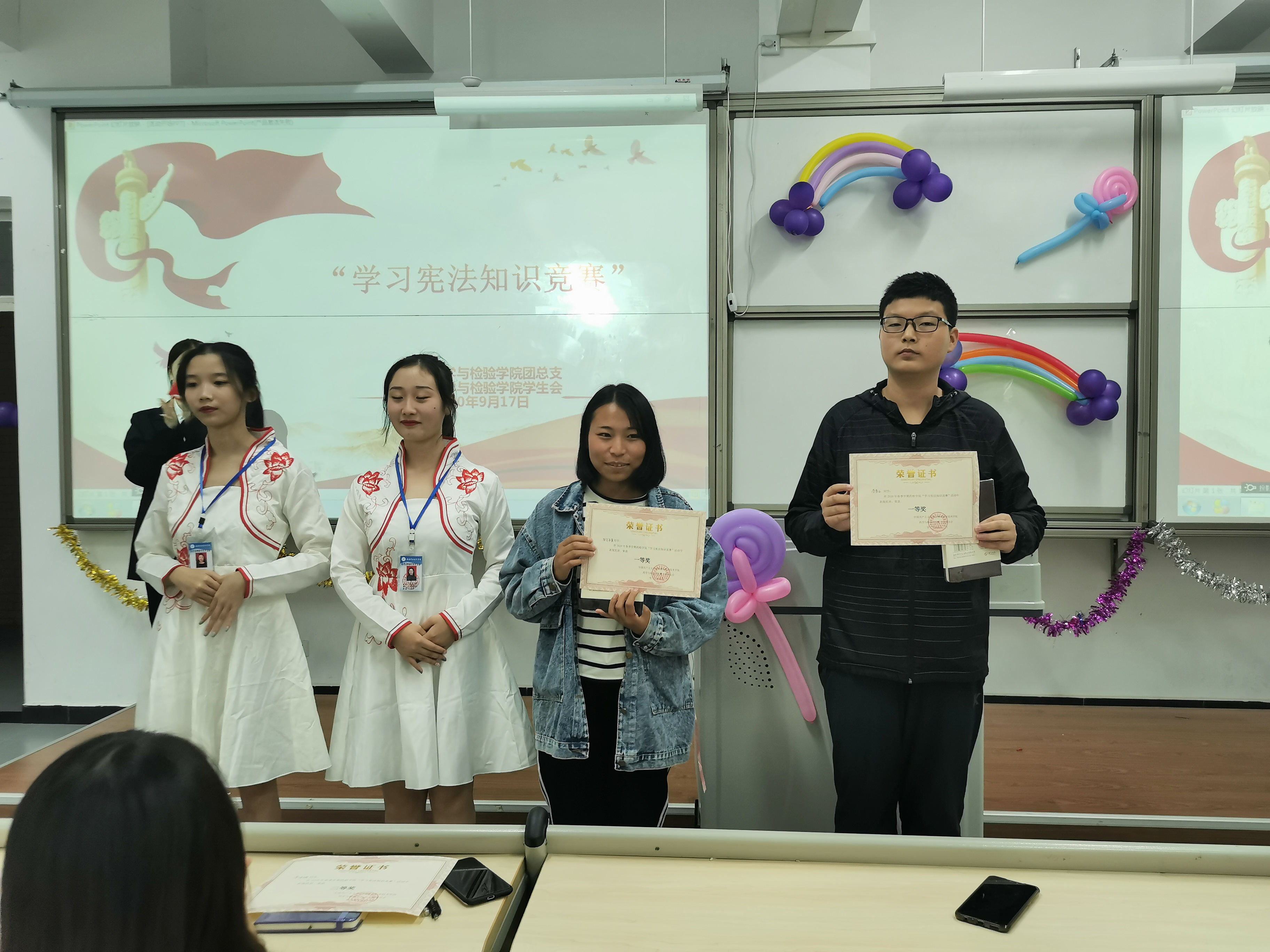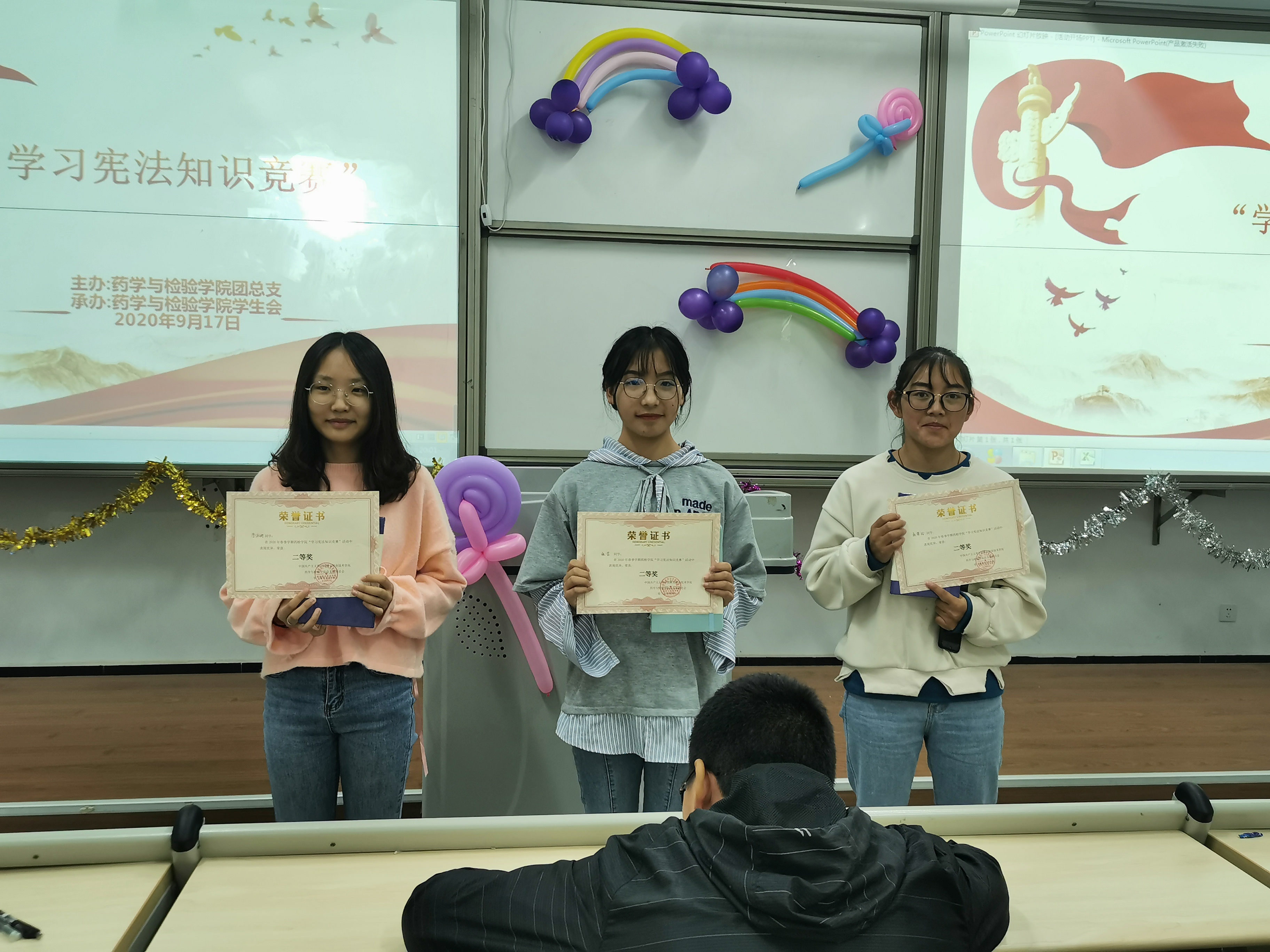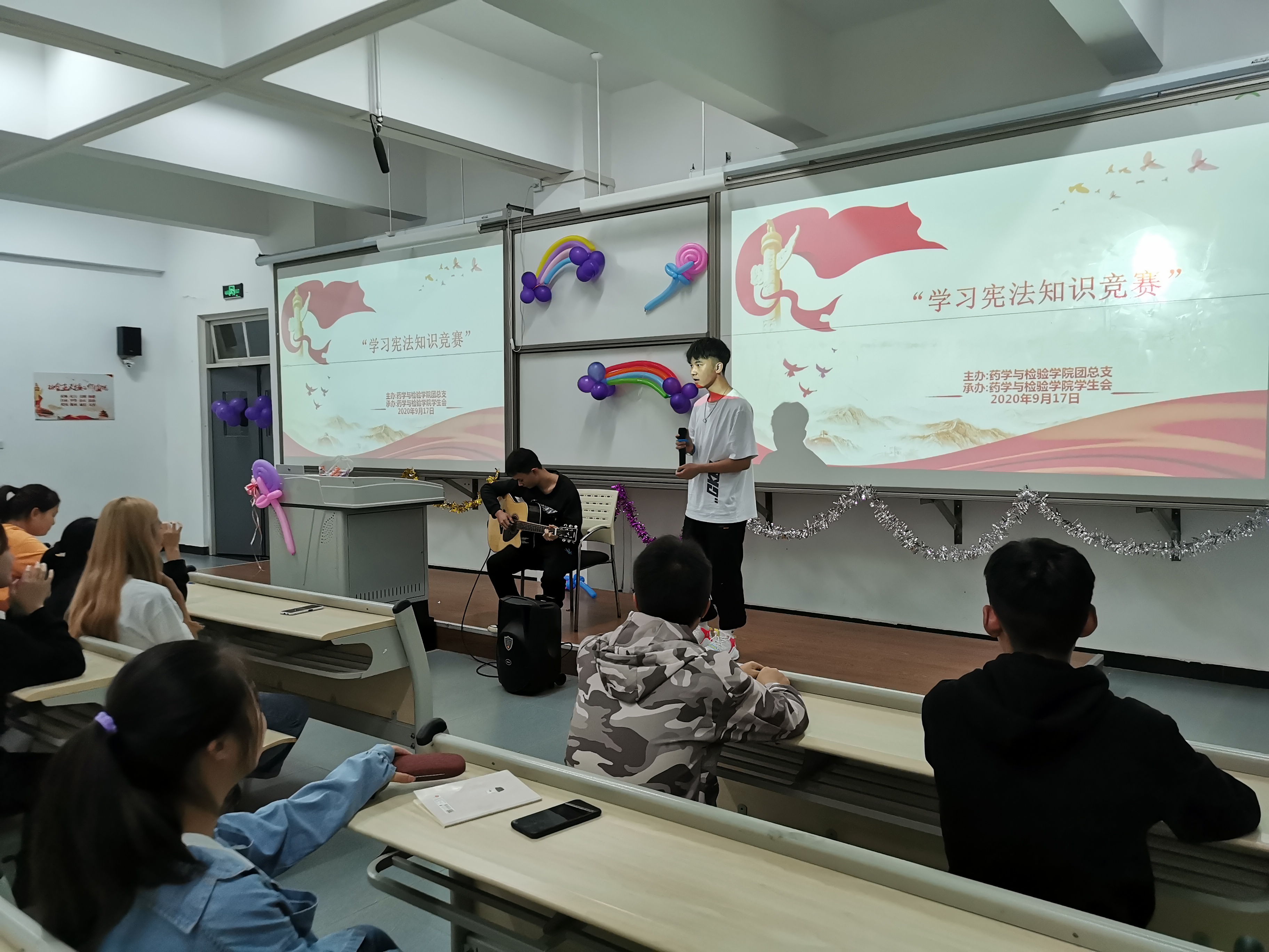 宪法是国家的根本大法,是治国安邦的总章程,适用于国家全体公民。尊崇宪法、学习宪法、遵守宪法、维护宪法、运用宪法是每个公民的责任。为了重温宪法内容,切实履行宪法赋予我们的权利和义务,药学与检验学院于9月17日18:40在经开区2104教室开展了“学宪法 讲宪法”知识竞赛活动,共计100余名学生参加。