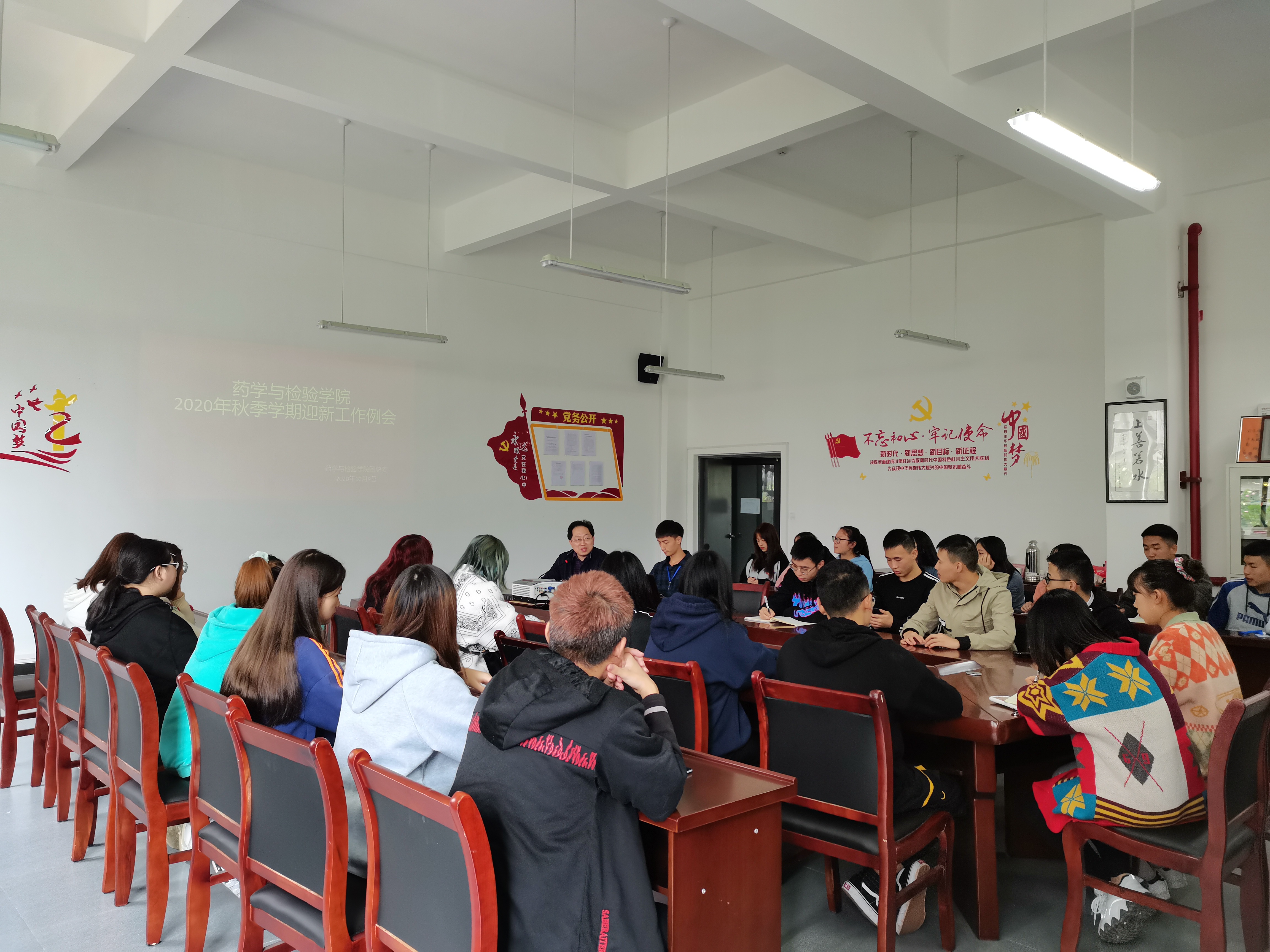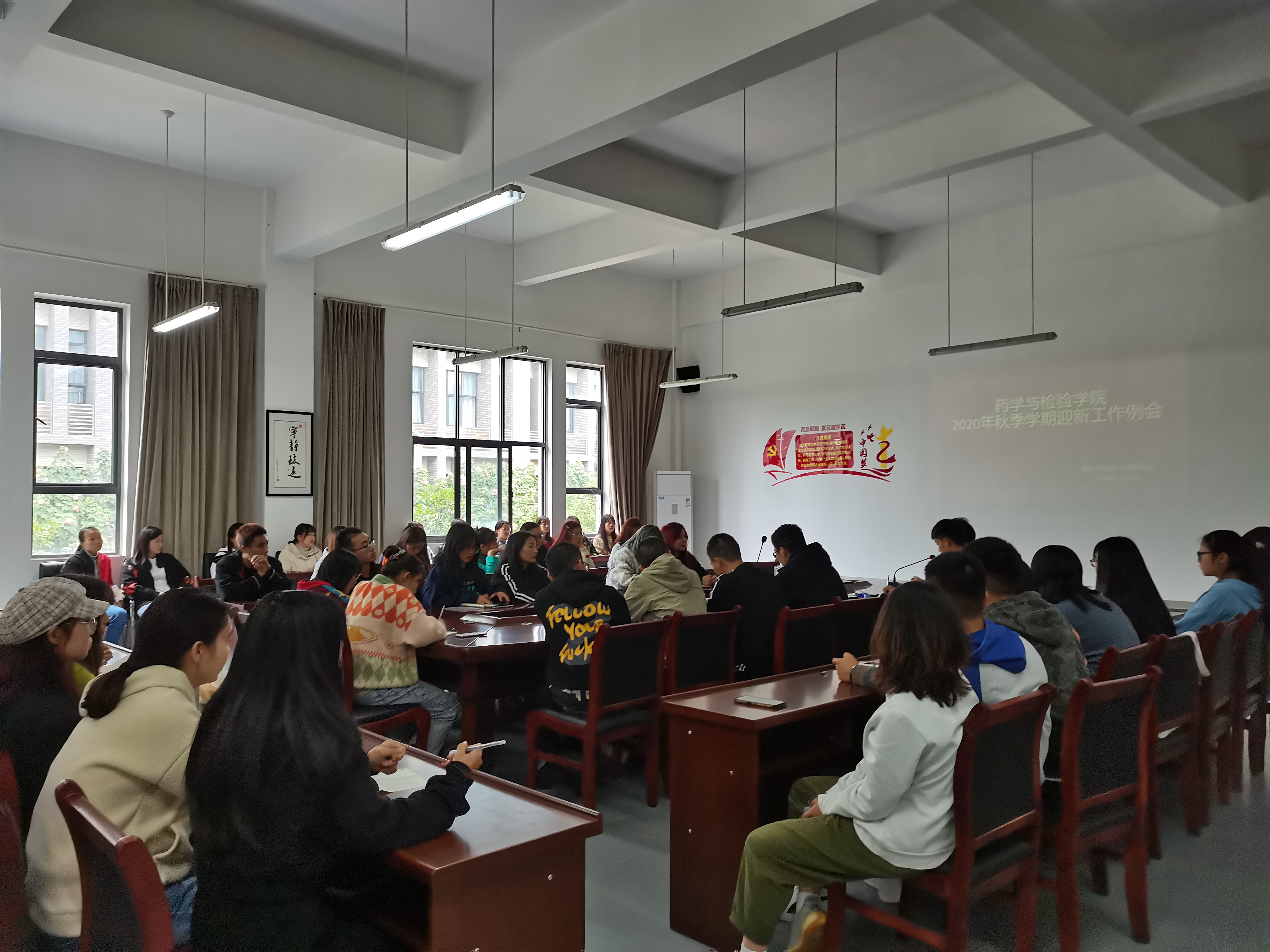金秋十月,与你相遇。为让即将到来的新同学们尽快熟悉药检院大家庭氛围,迎新工作能够有序完成,药学与检验学院于10月9日在药检学院会议室开展了2020年秋季学期迎新工作例会,参加例会的有药检院总书记杨泽刚老师、团总支副书记陈静老师以及志愿者们,共计60人。