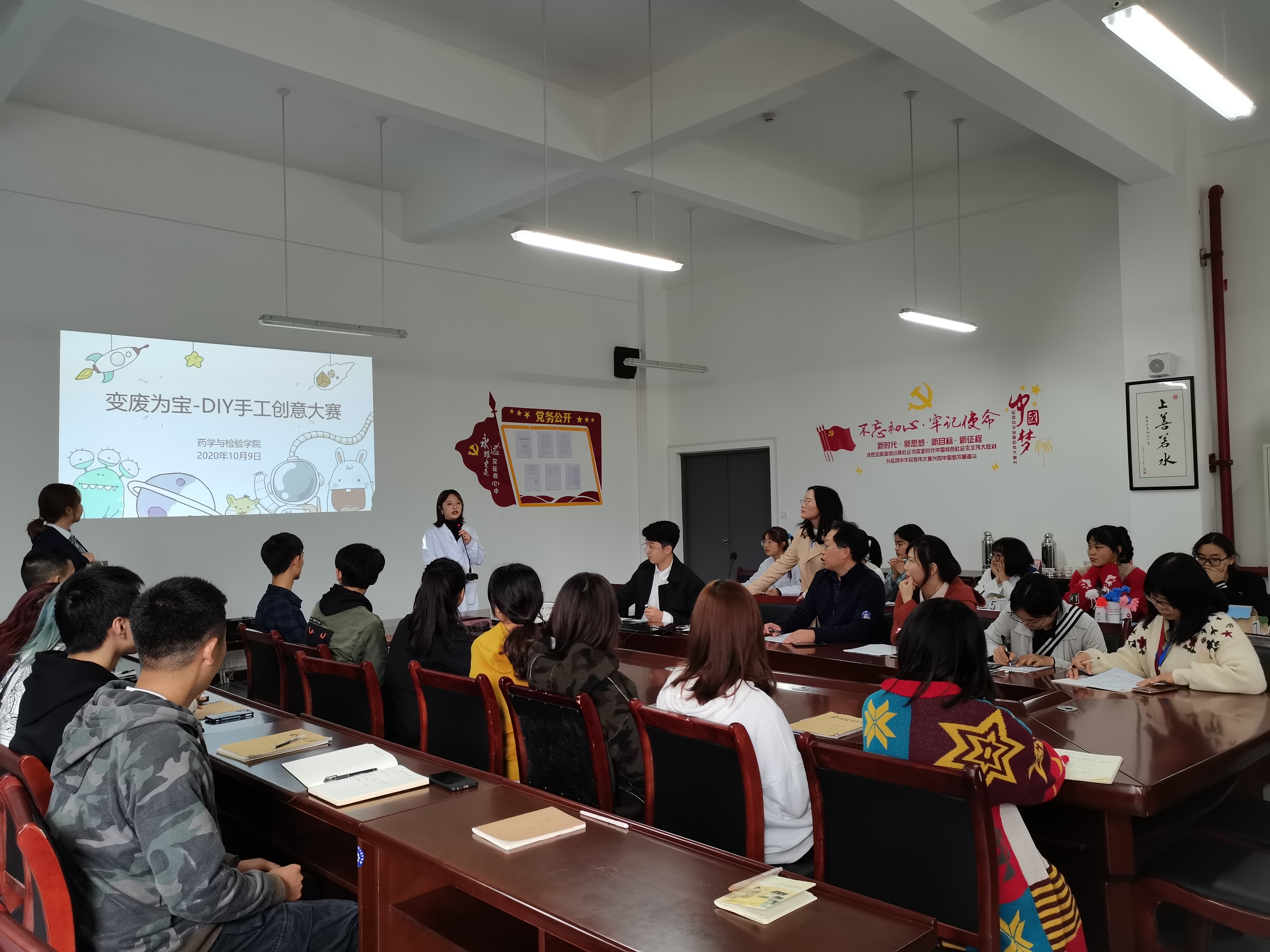 为了树立同学们废物利用,环保创新的意识,让同学们在接触事物的过程中关心身边的事物,学会思考如何与环境保持和谐统一发展。药检学院于10月9日在药检学院会议室进行了“变废为宝”手工DIY大赛的评分活动,评委分别是杨泽刚、陈静、龙凯琴、王宁、马春兰老师,到场参赛选手、评委及观众共计40余人。
