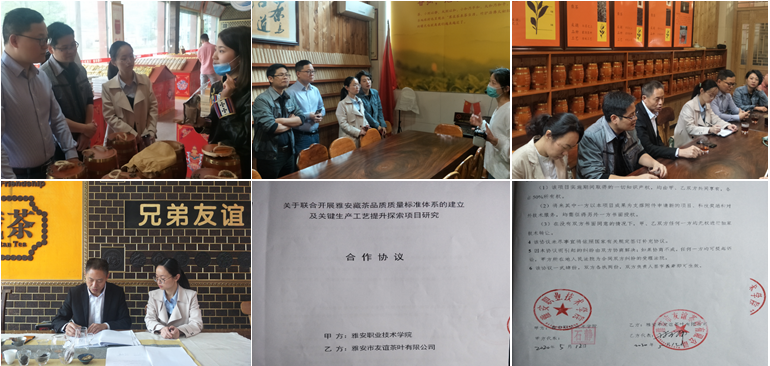 交流会上,甘玉祥先生对藏茶的历史文化、发展现状、制茶工艺现代化等进行了详细介绍,并对与学院在藏茶制作工艺研究方面的联合开发表示欢迎,希望双方以关于藏茶的应用技术开发研究为纽带,发挥各自优势,深入合作,促进校企协同发展,服务地方产业经济。双方不仅对未来的合作交换了意见,同时,对何靖柳博士主持的校企双方关于联合开展“藏茶品质质量标准体系的建立及相关生产工艺提升探索”项目举行了签约。
