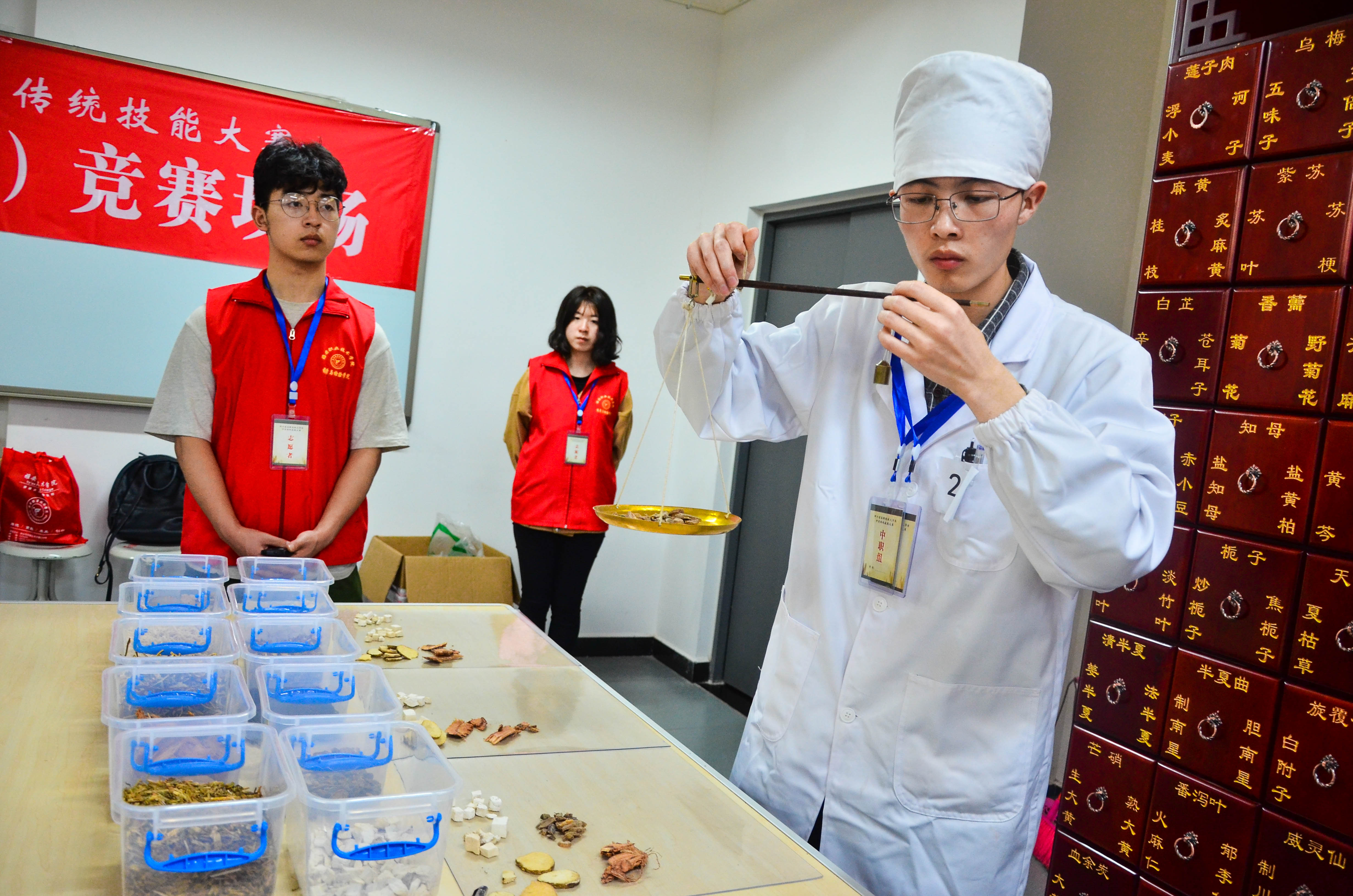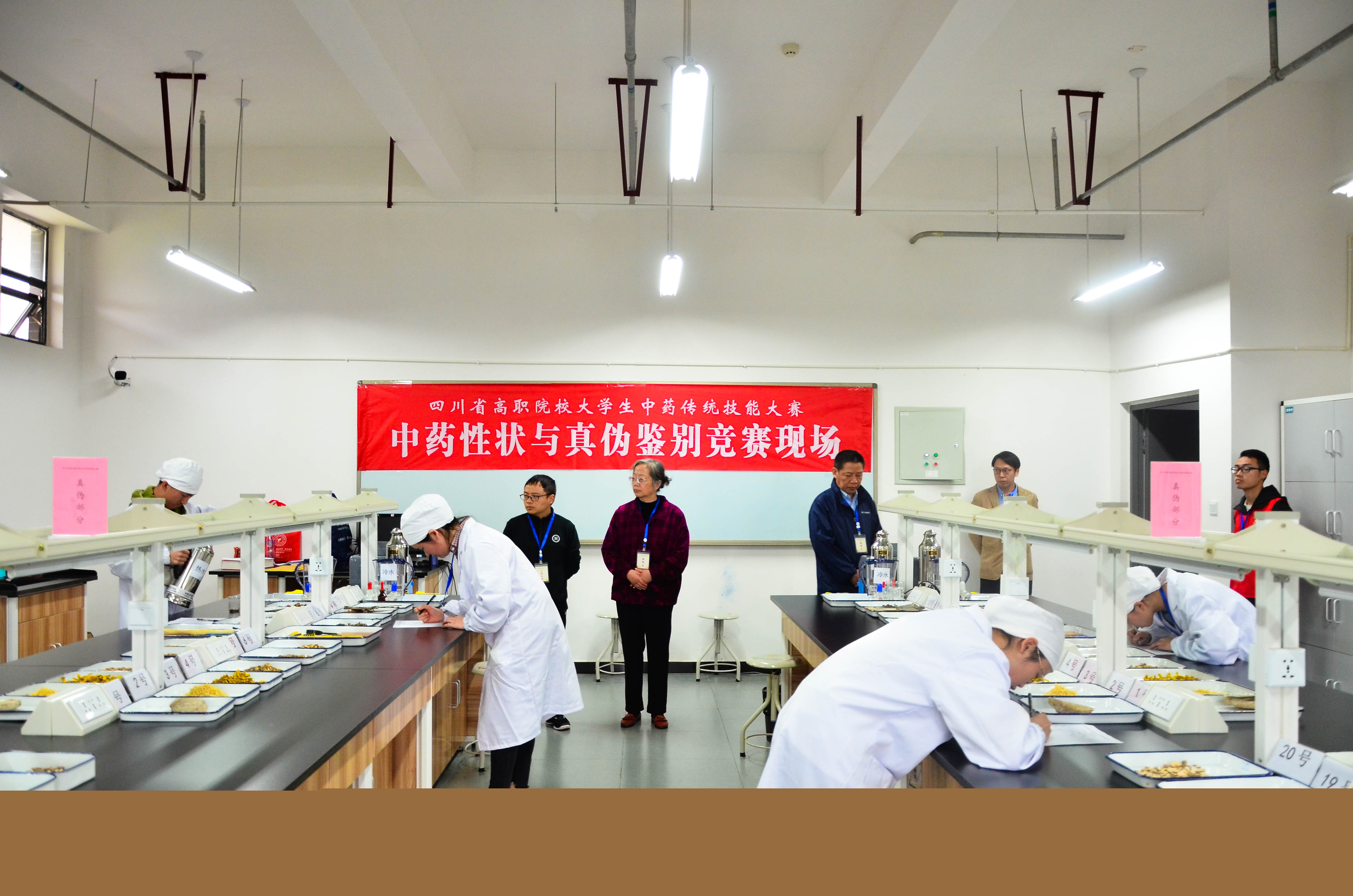 大赛历时2天,分为高职组和中职组,比赛包括中药调剂审方理论、中药性状与真伪鉴别、中药调剂、中药炮制、中药显微鉴定等五项内容。比赛同时,药检学院组织来访的职业院校和协办的医药企业单位进行了产教融合的教育研讨会。为了保证大赛顺利进行,给参赛院校的师生提供舒适的参赛体验,药检学院的老师、志愿者共计70余人做好了服务工作。赛场内井然有序、认真仔细的实训准备,校园内礼貌热情、微笑洋溢的迎接领路,休息室、比赛观摩室内耐心细致的泡茶续水等工作都彰显了工作人员的美好品格。参赛选手们也沉着冷静,用自己平日里苦练的技术向大家展现了自己的专业素养,药检验院四名参赛学生表现优异,彭灵芝获一等奖、唐思思和肖蒙获二等奖、徐微获三等奖。