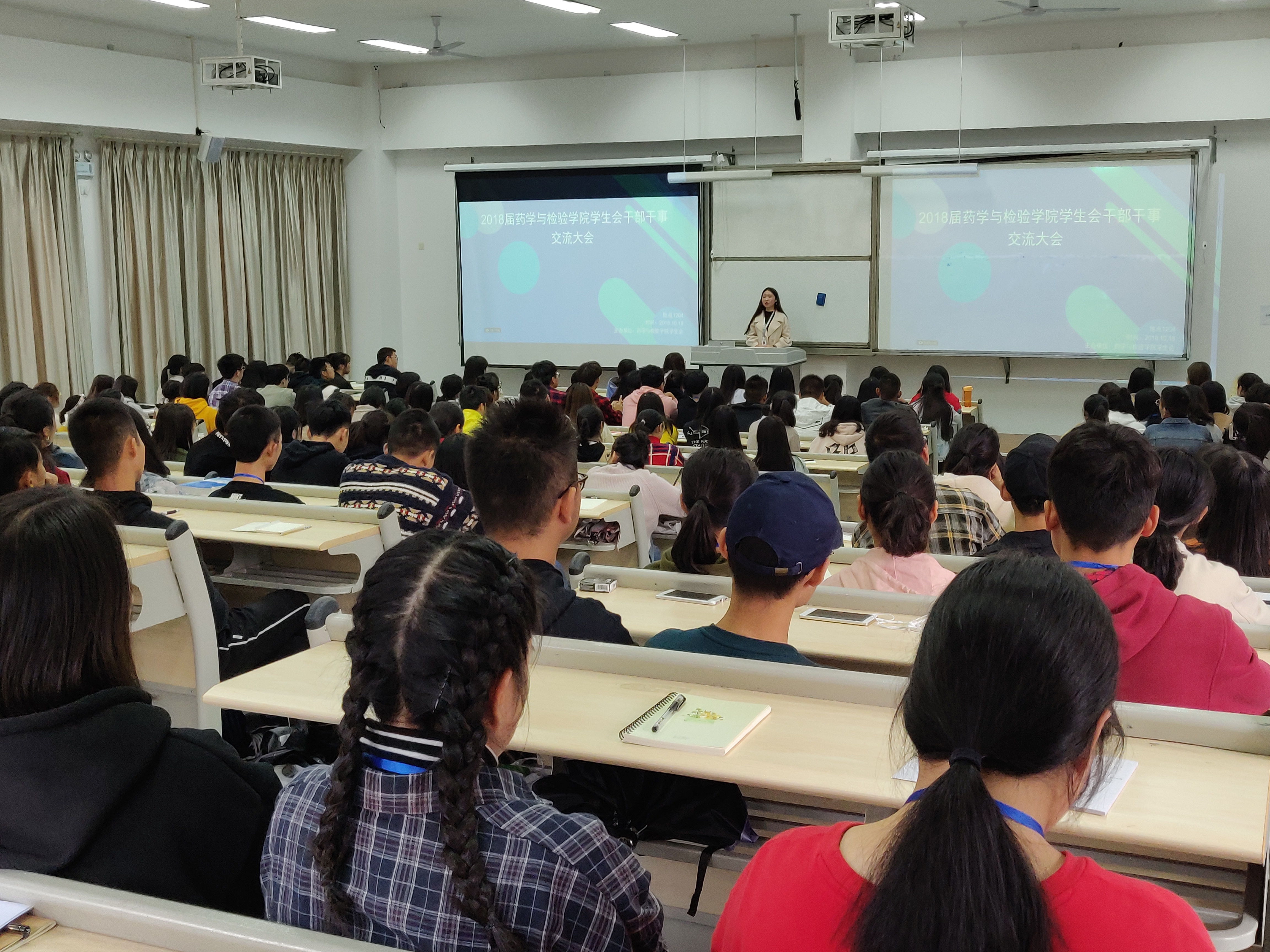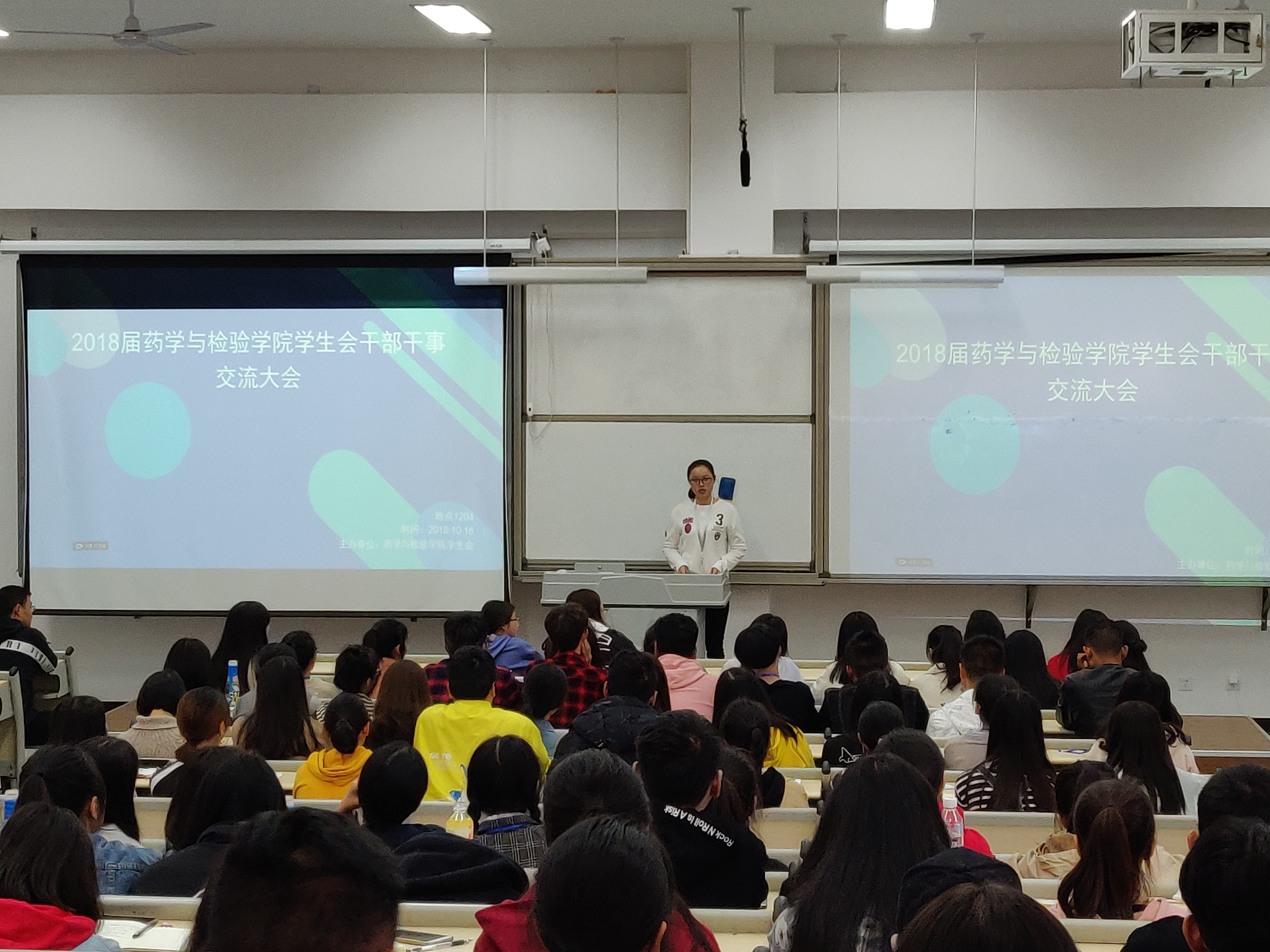 为了让新干事进一步了解学生会各部门工作职能,加强各部门干部干事的交流,增强本院学生会的凝聚力。10月18日12:40,药检学院团总支学生会在经开区实训服务中心在1204教室,举行了新老干部干事交流大会。药检学院党总支书记杨泽刚老师、团总支书记鲜敏老师、团总支副书记陈静老师以及学生会各部门干部干事共计200余人参会。会议由团总支副书记袁毓婷主持。