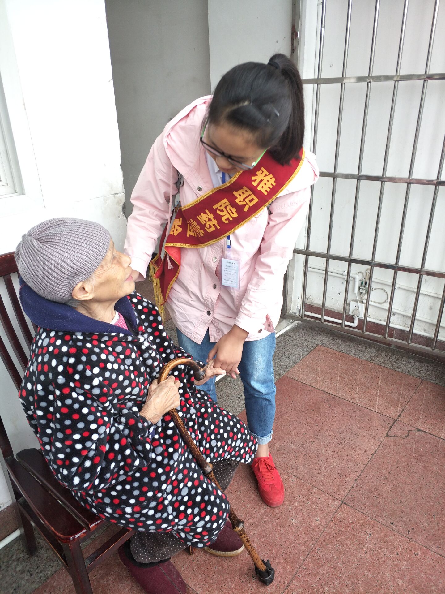 早上7点,志愿者们就从经开区校区出发,经过将近一个半小时到达目的地。大家一起分工合作:有的志愿者和爷爷奶奶谈心拉家常,有的志愿者给老人们修剪指甲,有的志愿者给老人们唱歌逗趣,有的志愿者用自身学习的专业知识为老人们做简单的按摩,有的志愿者陪着老人散步......志愿者们积极的行动和充满真挚感情的语言,将浓浓的亲情注入到每位老人的心田,爷爷奶奶们也被同学们的热情所感染,整个敬老院都沉浸在温馨、和谐的气氛中。其中,有一位99岁高龄的奶奶向大家讲述了她的自身经历和所见所闻,教导同学们要珍惜现在来之不易的美好生活,听党话跟党走,做一个家长放心老师喜欢的好孩子!时间过的很快,一眨眼便到了午饭时间,志愿者们将老人们送回房间,大家依依不舍的告别。