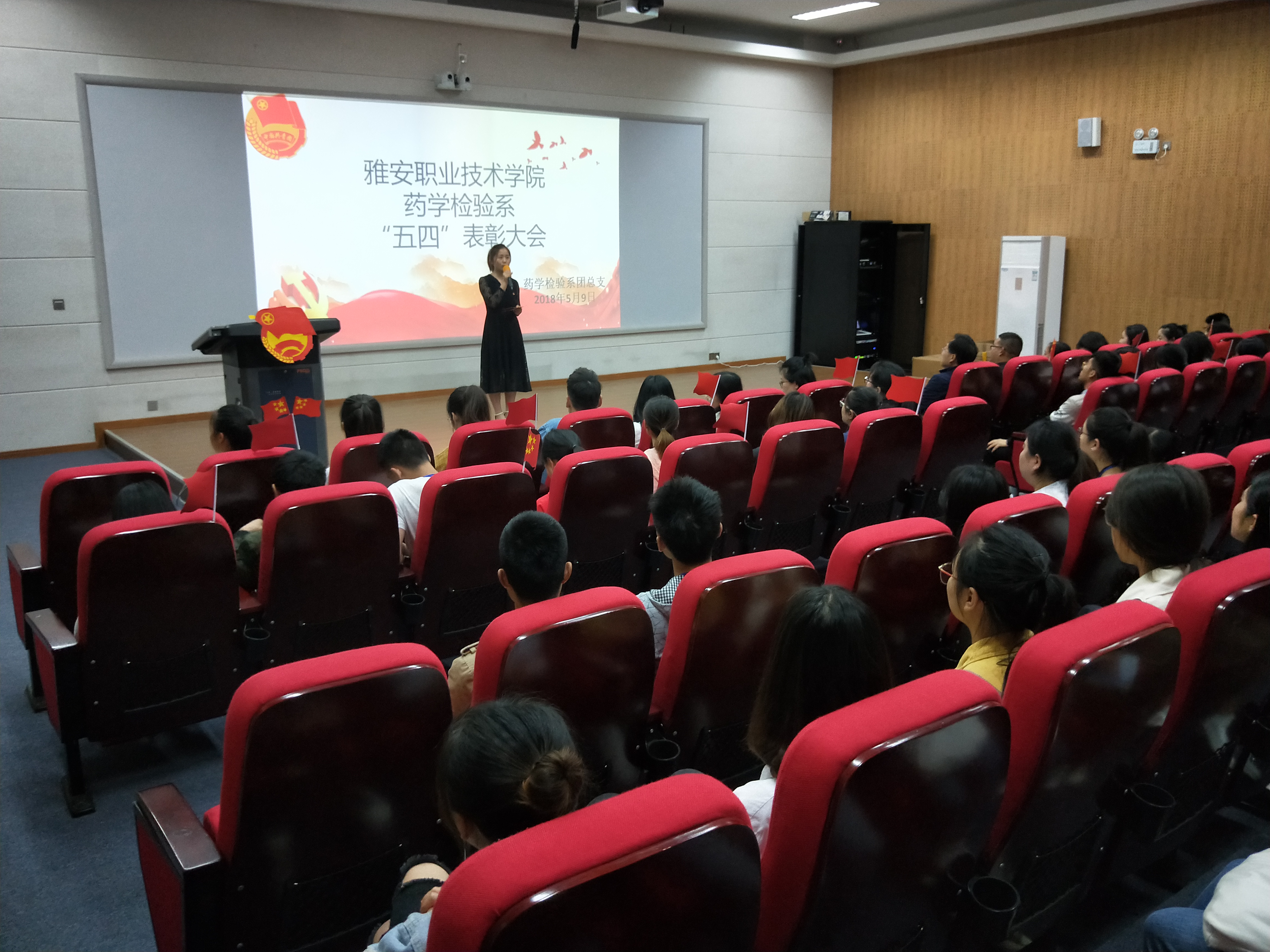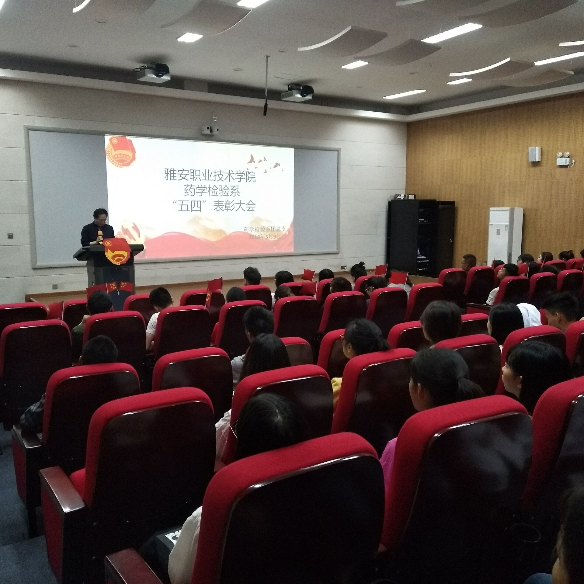 为表彰一批优秀先进学生代表,鼓励同学们积极进取,勇创佳绩。药检系团总支于5月9日13:00在2204多媒体教室召开了“五四”表彰大会。系党支部书记杨泽刚、团总支书记鲜敏、团总支副书记陈静、各级辅导员老师和200余名学生参加了此次会议。大会由学生会主席李玉莲主持。