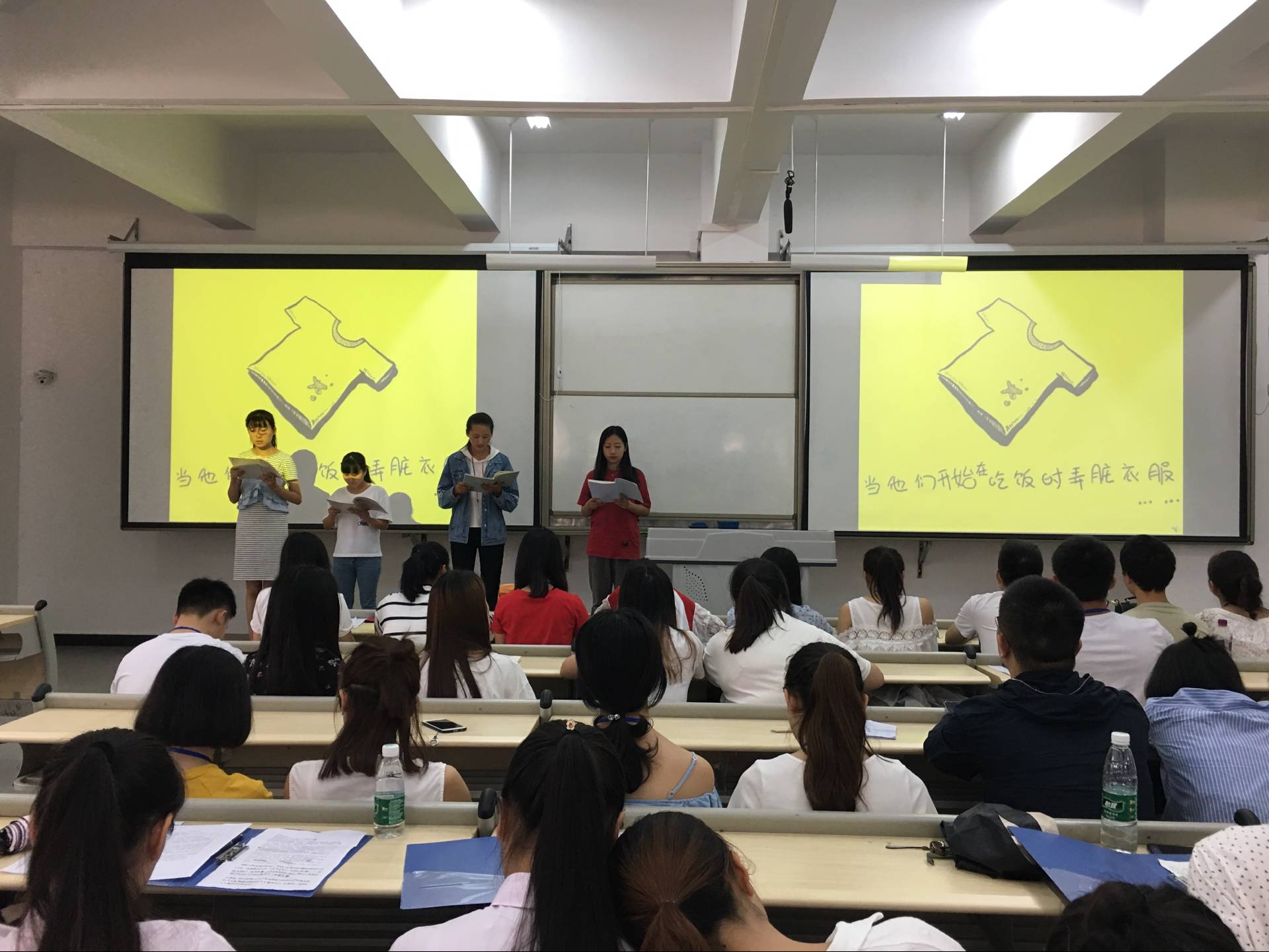参赛团队有的单枪匹马,有的并肩作战。虽然是初赛,但大部分参赛者服装统一,举止自然端庄,体现了青年学生良好的精神风貌。参赛者吐字清晰,声音宏亮,他们的朗诵都像一幅幅作品展现在观众眼前。有的作品感情饱满,有的作品创意十足,有的作品引人入胜,有的作品也需再接再厉。决赛名单经讨论后会另行公布。