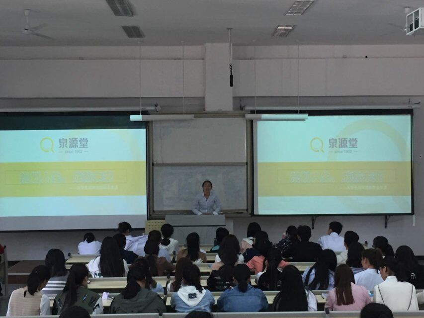刘老师对泉源堂进行了详细的介绍,让同学们进一步了解了药企。同时也给同学们的学习、生活和就业提出了建议。随后,由泉源堂的工作人员和大家分享自己的就业经历。她提到了自己怎么对人生进行的规划,在校期间应该如何去进行药学知识的学习,进入社会后怎样对待工作和为人处事。两位老师都告诫同学们无论何时都得严格要求自己,善于倾听与表达,尊重身边的每一位朋友,对自己的人生进行一份合理的规划。最后,讲座在同学们热烈的掌声中圆满结束。