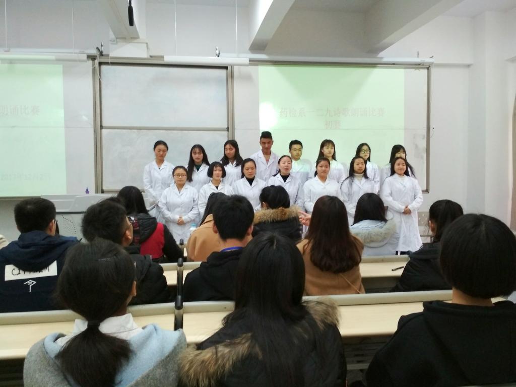 为了纪念“一二•九”爱国学生运动82周年,营造高雅的校园文化氛围,丰富同学们的校园生活,传承民族精神,培养青少年的爱国精神。12月2日13:00,药学检验系团总支学生会在2104教室举行了主题为“不忘初心颂党恩•牢记历史铸新魂”的一二·九朗诵比赛初赛。比赛由团总支副书记郭杰主持,共计80余人参加。