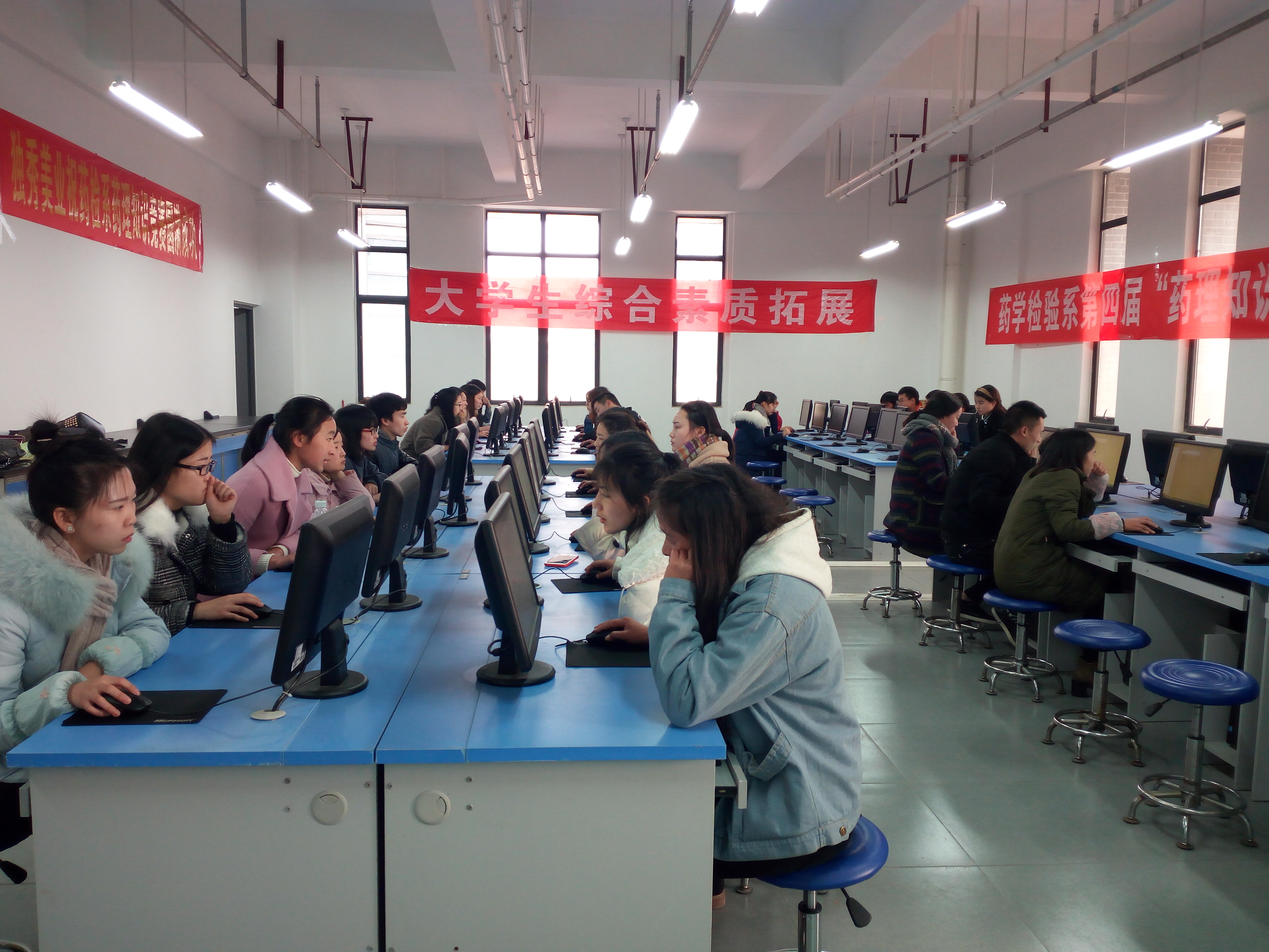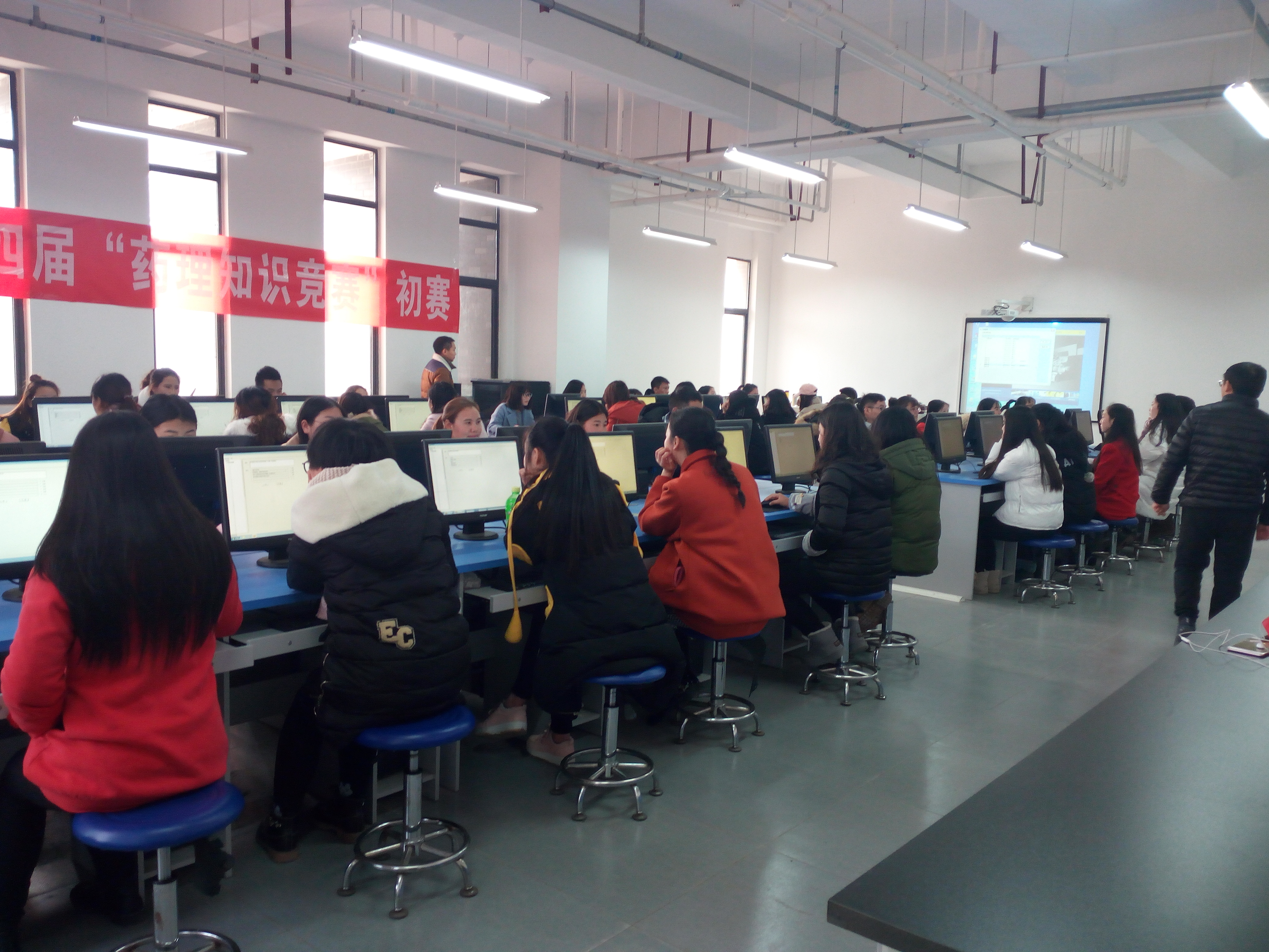初赛于12月23日上午09:00在经开区药学与检验楼GMP仿真实训室205举行,14:30接着进行复赛。参赛同学按照时间提前到经开区药学与检验楼下进行签到,了解比赛流程,然后按48人一组依次到205比赛。初赛和复赛均以“机考”的形式作答,试题由药理学专业知识和生活百科知识组成。但初赛和复赛试题在难度、广度以及数量上不同。医学系、护理系和药检系共计313人报名,最终210名学生参加了初赛,每位同学都认真分析,严谨作答,最终前140名选手进入了复赛。在初赛中表现较好的同学,复赛成绩稳定。通过两轮比赛的综合表现,预计34名同学进入决赛,决赛预计2018年1月2日举行,预祝同学们取得好成绩。