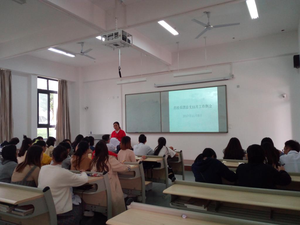 为了进一步部署11月工作具体安排,2017年11月8日13:00,药检系团总支学生会在经开校区1101教室召开了干部例会。团总支书记鲜敏老师、团总支副书记陈静老师以及学生会全体干部参加了此次例会,会议由鲜敏老师主持。