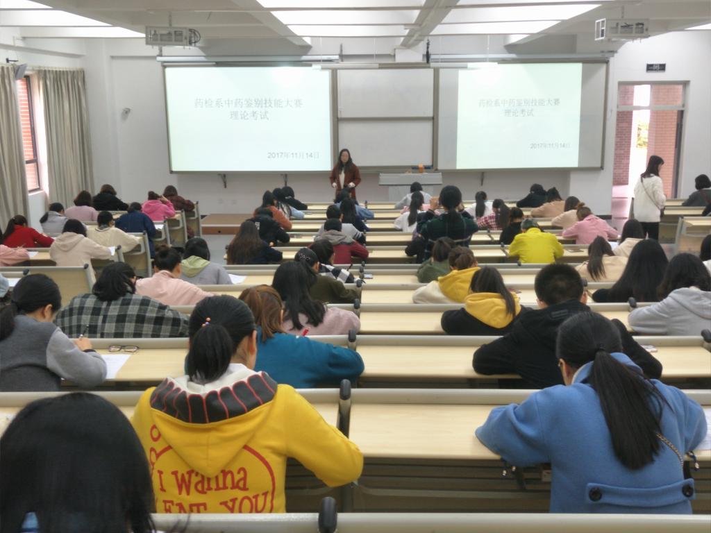 为了传承中国传统,突显专业特色,提高学生理论联系实际的能力,11月14日中午13:00,药检系团总支联合中药协会在经开区实训服务中心举行了第二届“中药鉴别技能大赛”。大赛吸引了来自中药、药学、护理、中医骨伤、针灸推拿等专业共计99名同学报名,实际参赛76人。系副主任李顺源、团总支书记鲜敏、副书记陈静以及中药教研室章斌、姚永秀老师到场监督和指导。