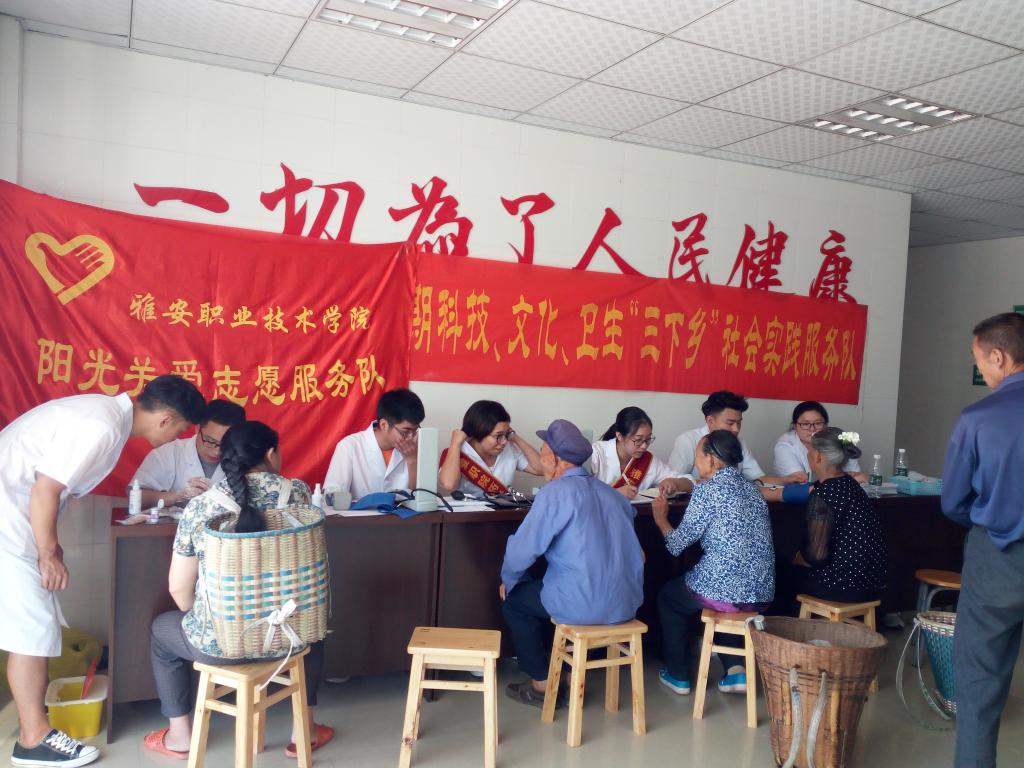 为了利用系部专业特色,更好的开展医疗服务社会实践活动,引导青年学生走进基层、走进人民群众,响应“受教育、长才干、做贡献”的社会实践活动宗旨。7月13日08:00,药检系阳光关爱志愿服务队在团总支书记鲜敏,团总支副书记陈静,专业指导老师林浩和李飞的带领下,赴雅安市碧峰峡镇进行义诊活动。