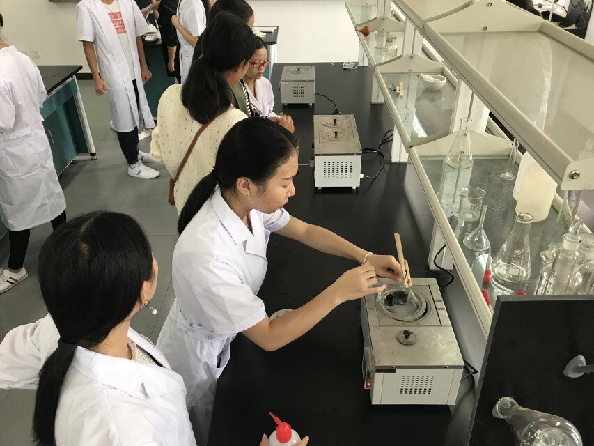 2017年9月19日14:30,药检系团总支学生会组织系部同学在药学与检验实训楼一楼化学实验室进行了手工香皂小制作活动,制备过程由姚永秀老师进行讲解。