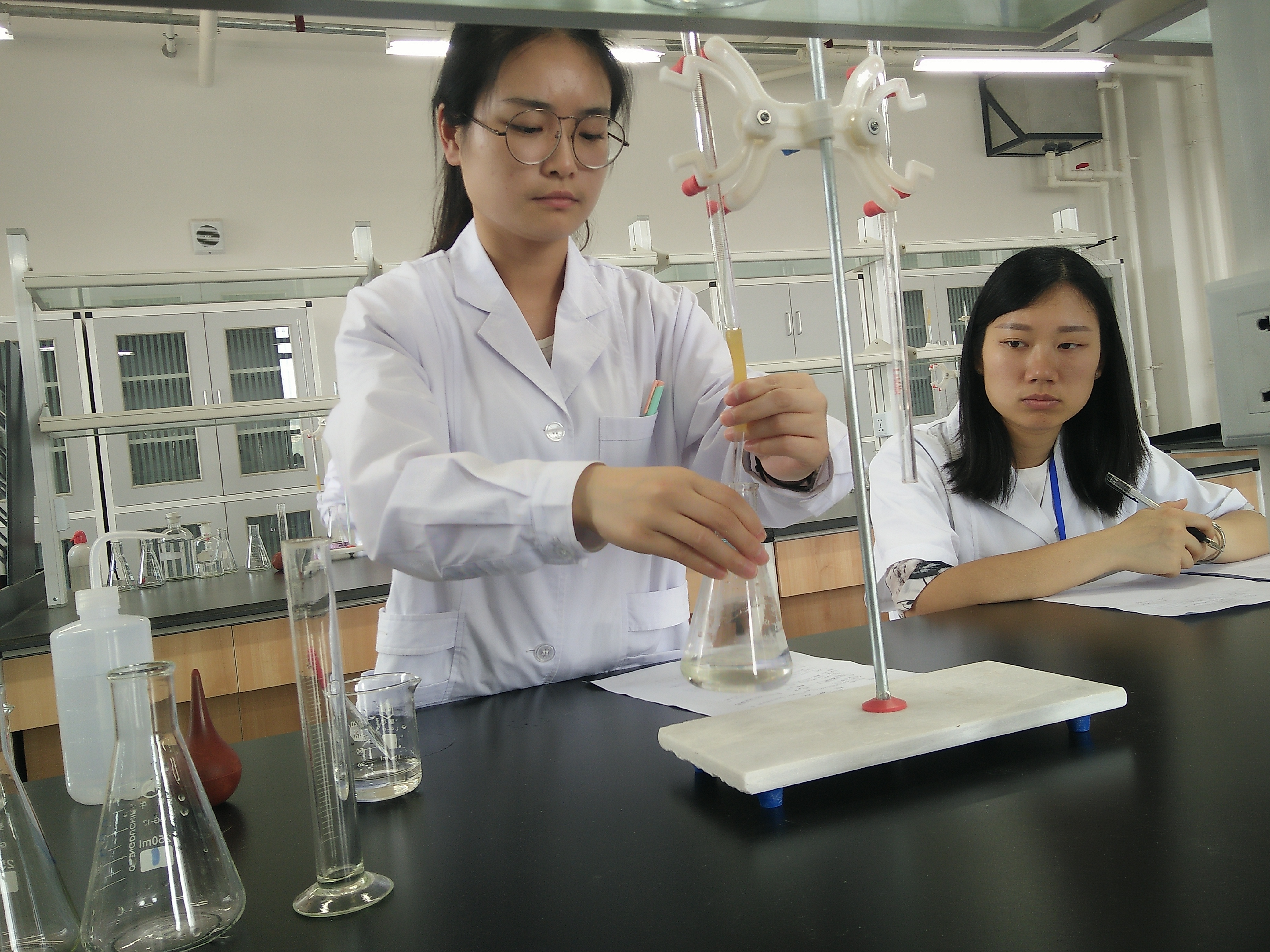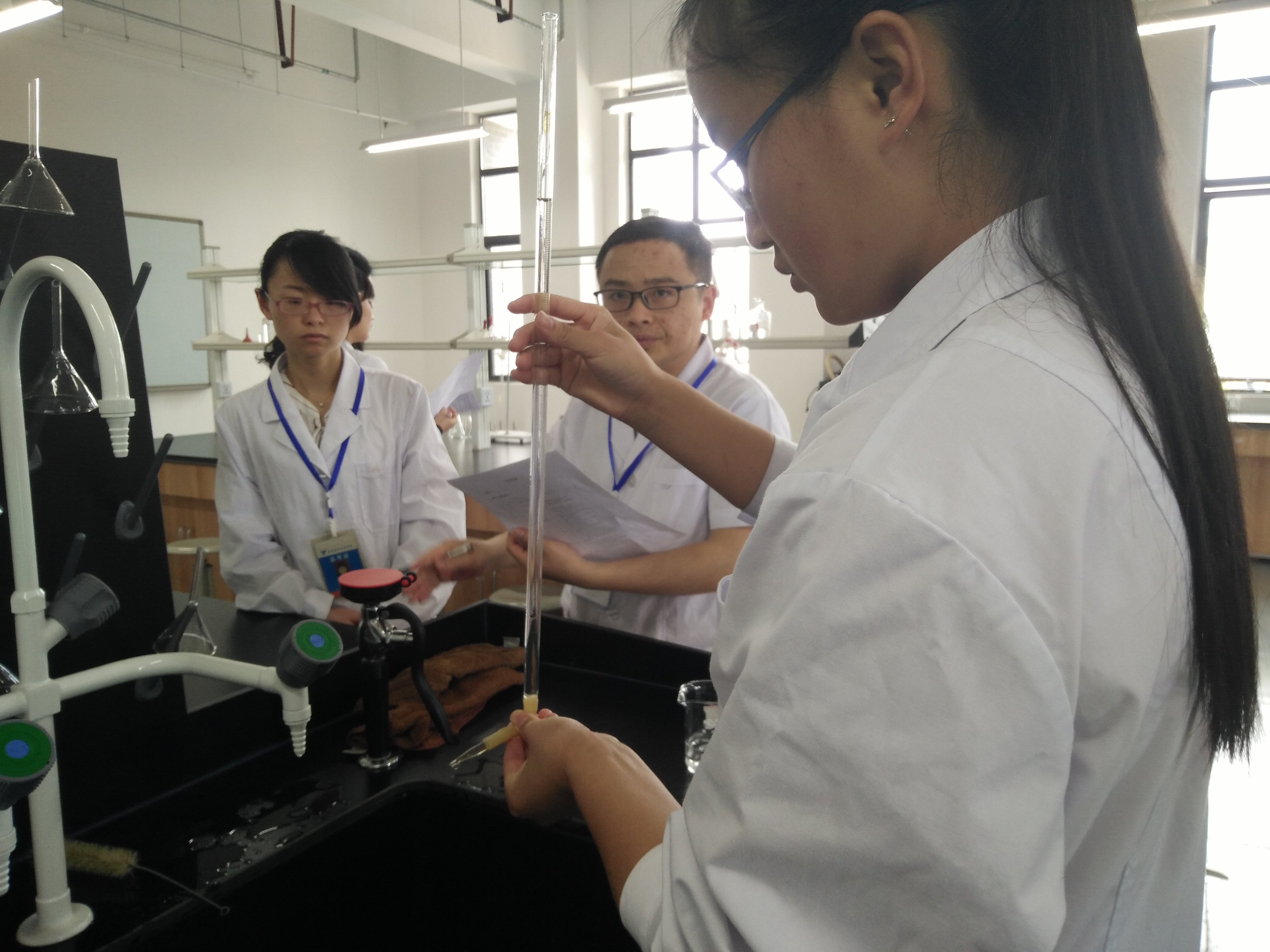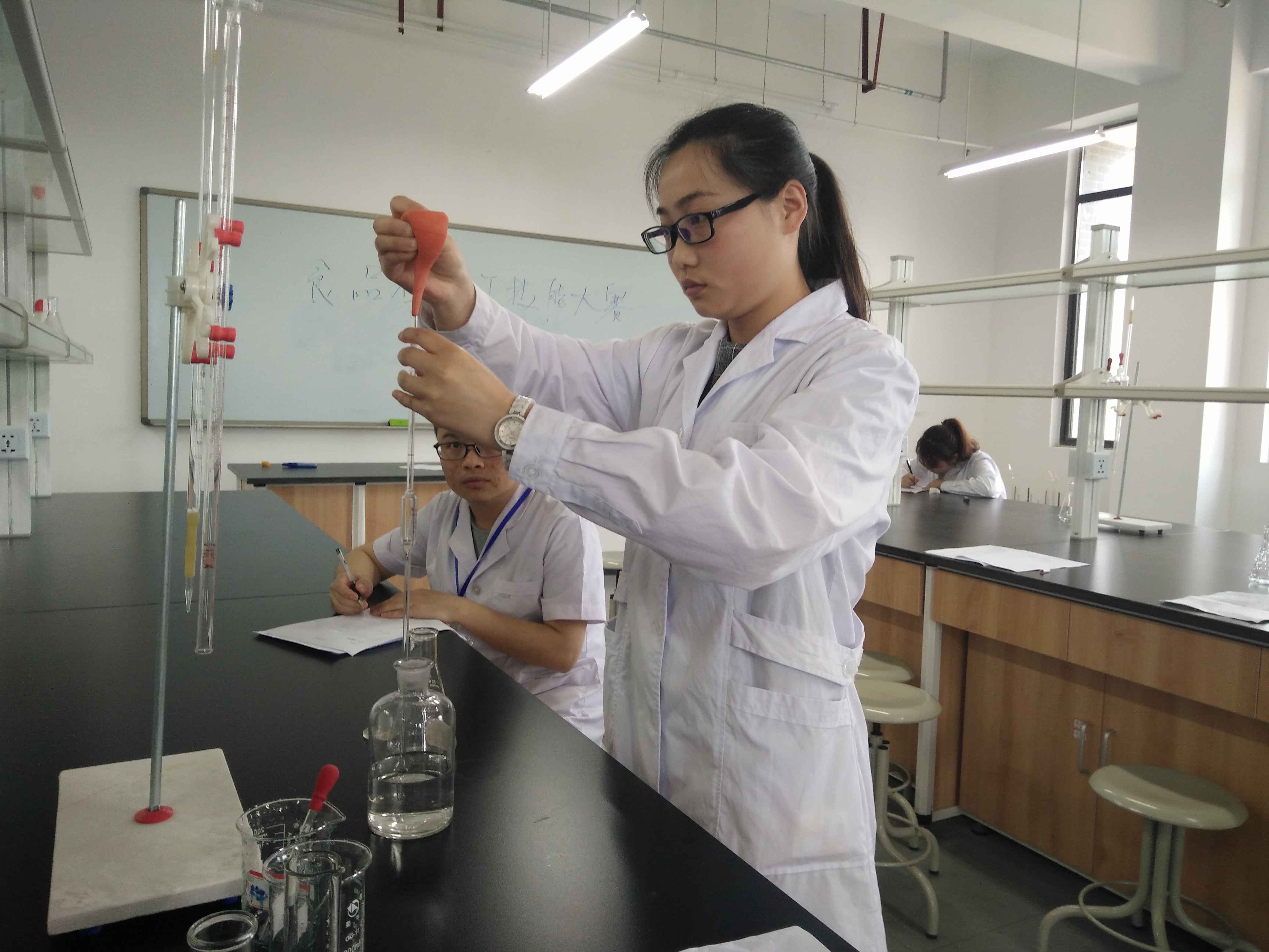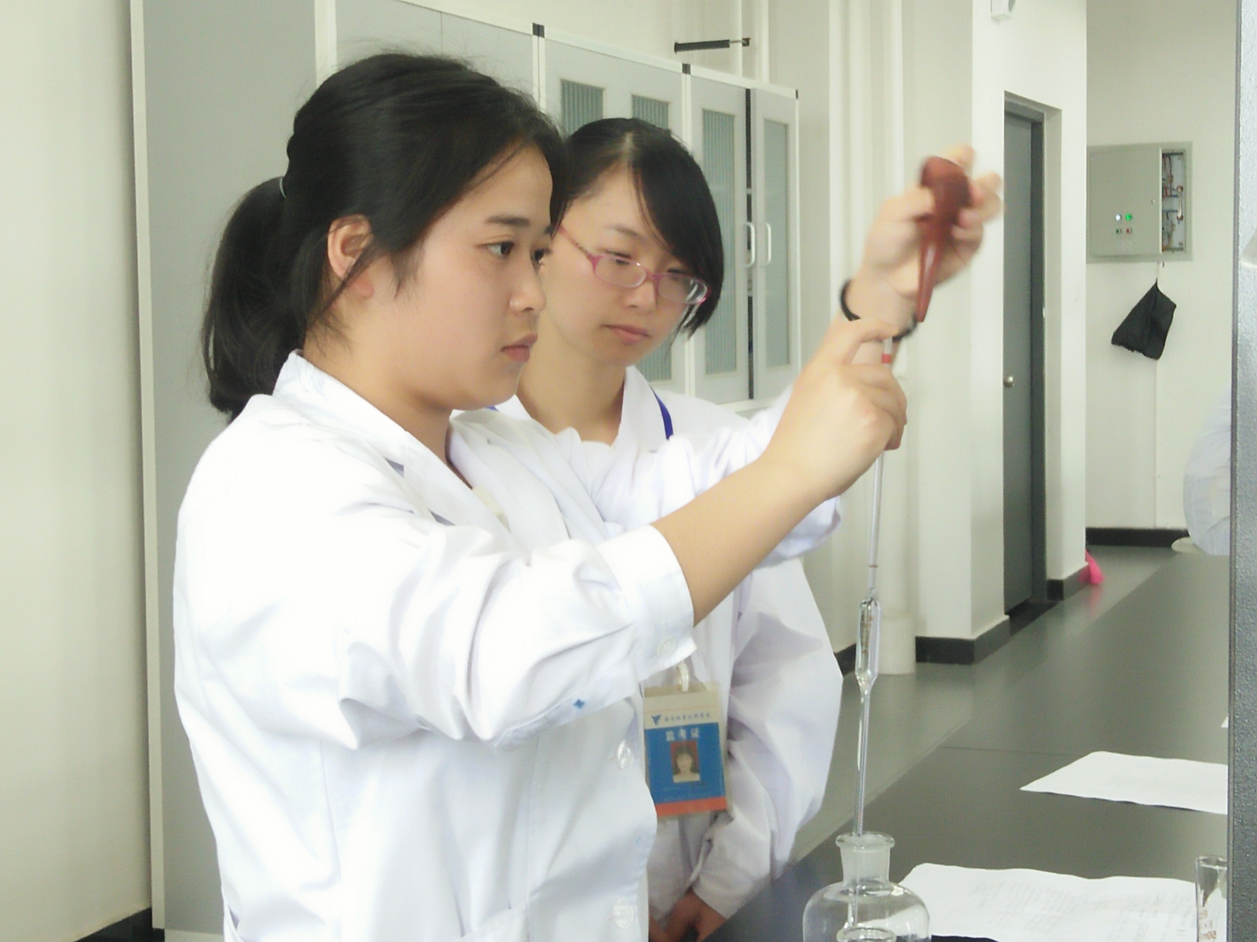 5月19日下午,借职业教育活动周之机,药检系在经开区食品药品主楼理化检验实训室开展了食品检验工技能大比拼活动。通过筛选和推荐,共有25名同学参加此次活动。 经过前期食品检验工技能鉴定培训,同学们已经掌握了食品中水分、灰分、酸碱度等测定方法。本次比拼主要通过白酒中总酸的测定来检测同学们运用理论知识指导实践操作的能力。