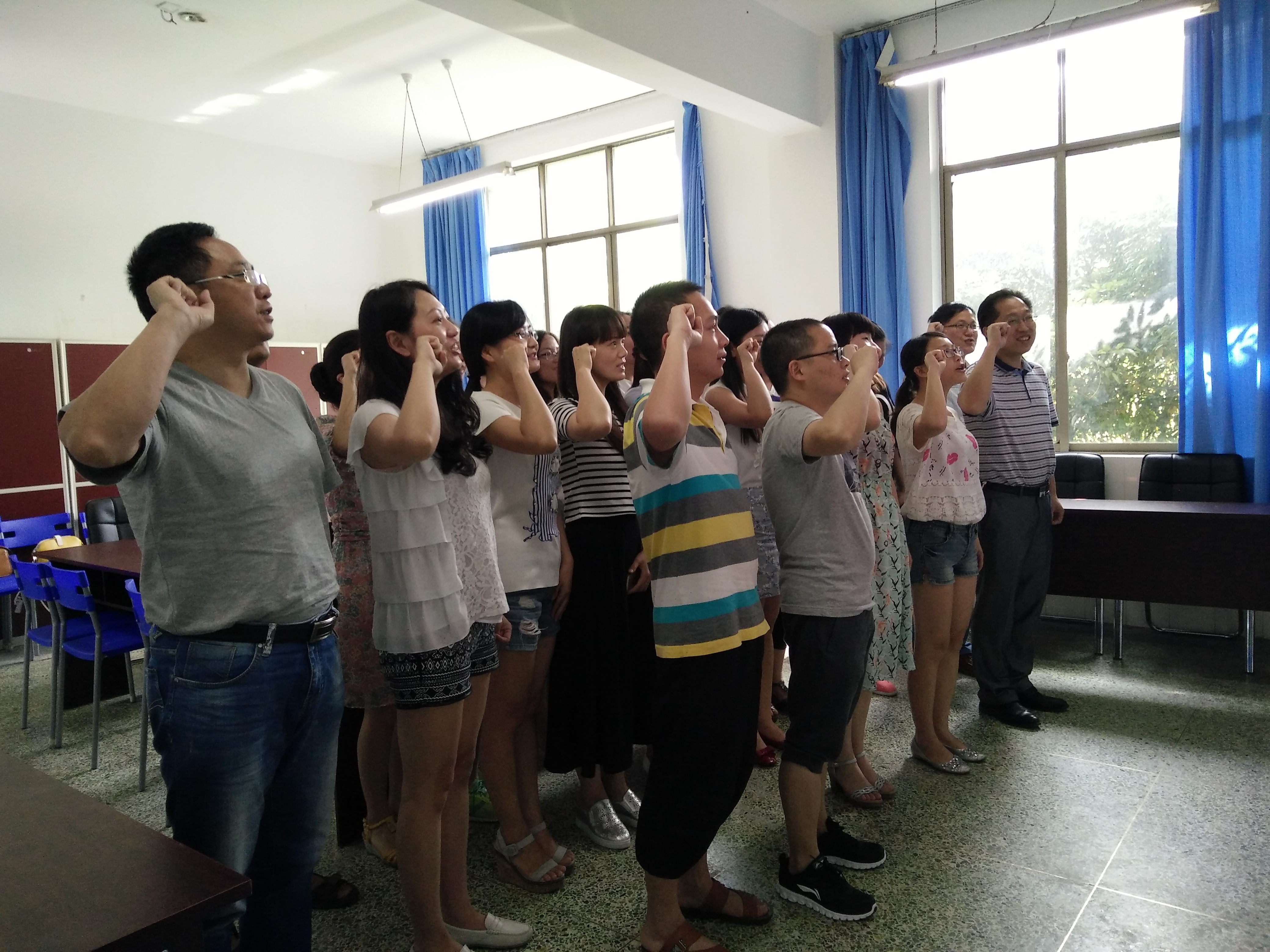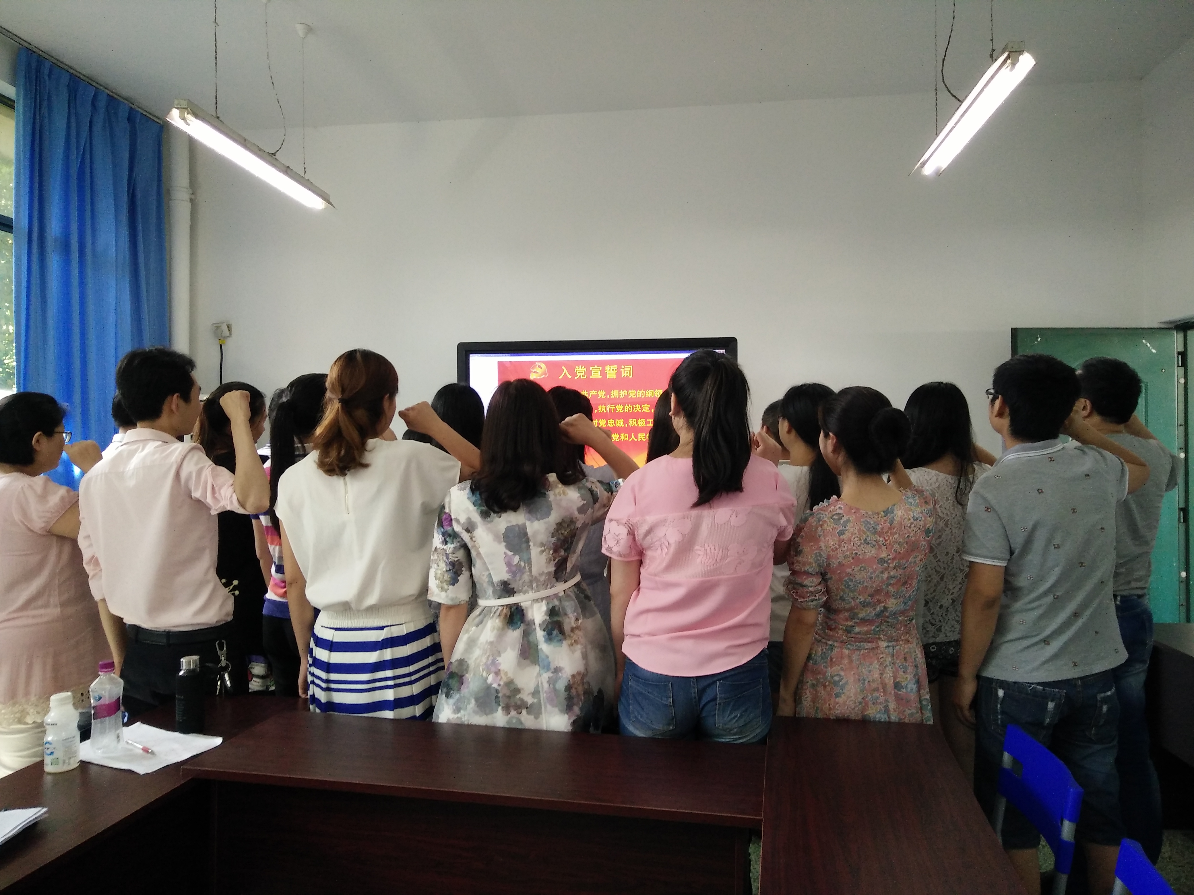 大会由党支部书记杨泽刚主持。首先,杨书记带领大家回顾了“两学一做”教育活动的具体含义,强调了要把“学”作为前提和基础,把“做”作为重点和关键。接着,杨书记组织党员教师一起学习了党章的第一章,并对后期支部的“两学一做”教育活动做了部署安排,同时要求各位党员教师要自觉学习党章党规,领会习总书记的讲话精神,以学促做、知行合一,做“四讲四有”合格共产党员,切实树立起共产党员先锋形象。最后,全体党员教师面对党旗,神情庄重,右手握拳,在党支部书记杨泽刚同志的带领下重温入党誓词:“我志愿加入中国共产党,拥护党的纲领,遵守党的章程……”。在庄严的誓词中,本次学习教育活动圆满结束。