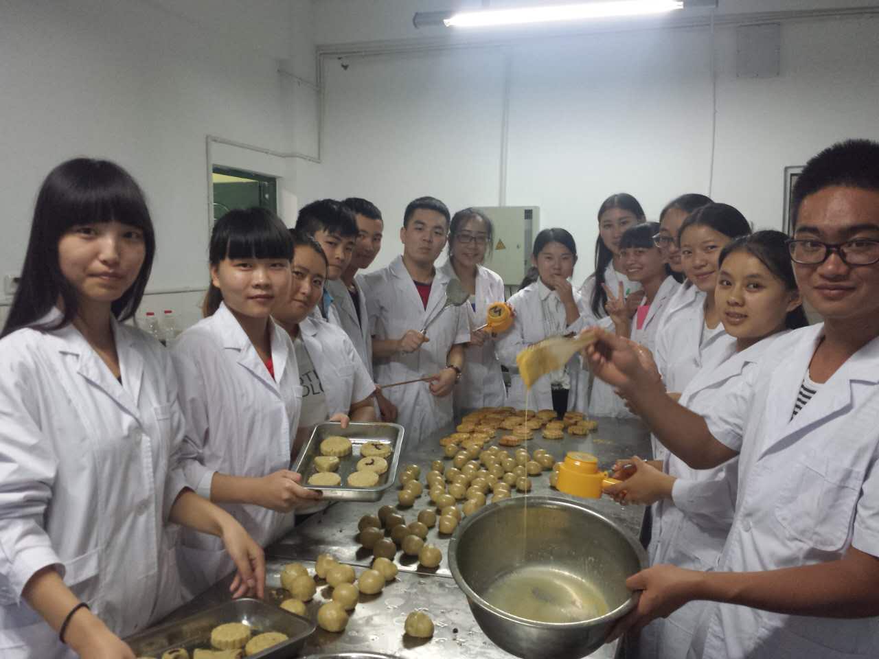 中秋前夕,在食品专业张恒老师现场带领和指导下,药检系食品营养与检测专业学生及部分教师利用课余时间,在青年路食品加工实训室自制月饼,迎接中秋佳节的到来。