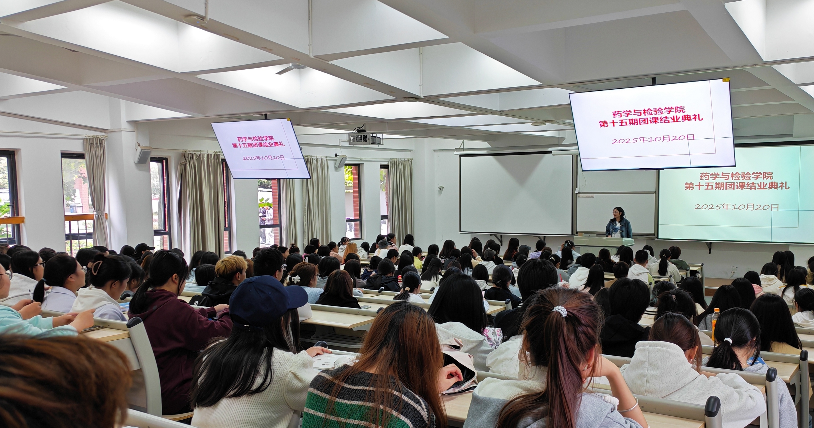 10月20日,药学与检验学院第十五期团课结业仪式在经开区校区1104教室举行。药检学院党总支书记王悦秋、团总支书记鲜敏、第三党支部书记陈静、团总支副书记曾晓梅出席仪式,与全体团课学员共同参加了本次活动,为本期团课学习画上了圆满的句号。